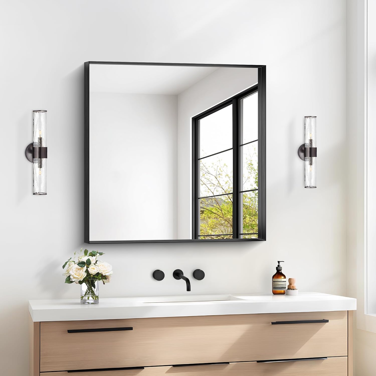 Black Bathroom Mirror, 30x30 Inch Rectangular Framed Mirror, Large Wall Mounted Bathroom Vanity Mirror Over Sink for Bedroom,Restroom, Living Room, Hangs Vertically or Horizontally
