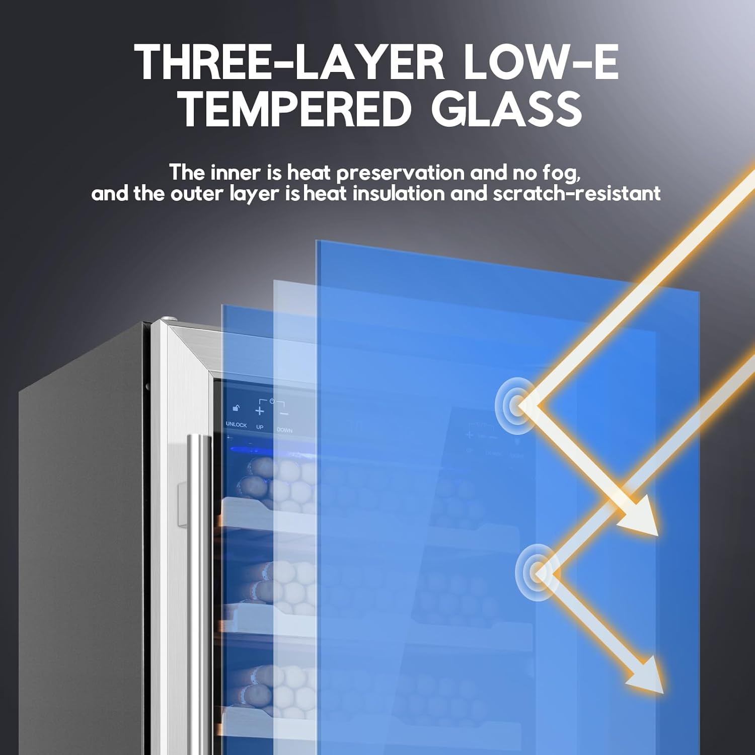 - ăReversible Door Design & Low-E GlassăThe door frame and handle of the Cigar humidor are made of stainless steel, highlighting the elegance and nobility. The reversible door design allows you to adjust the opening direction according to your preference. The Low-E composite coating between the two tempered glass panes and the microcellular high-pressure foamed insulation provide superior thermal insulation. Built-in LED blue light is convenient for you to check the cigar's status. Energy saving design, power consumption is ďź 0.28 kWh/24 hours, cost is ďź 0.06/day.