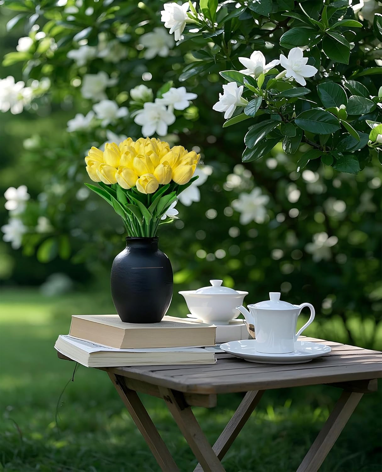 - MATERIAL: Our artificial tulips are made of plastic and polyurethane, which has a soft texture and a realistic touch. Inside the stem is durable wire that can be easily bent and cut to fit different vases as needed
