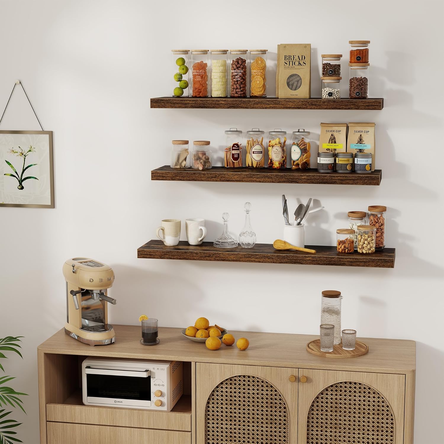 Floating Shelves Wall Shelf 40 Inch, 8 Inch Deep Floating Shelf for Wall, Farmhouse Black Wood Shelves Invisible Bracket for Living Room, Bedroom, Kitchen, 40 x 8 x 1.4 Inch, Set of 2, Rustic Brown