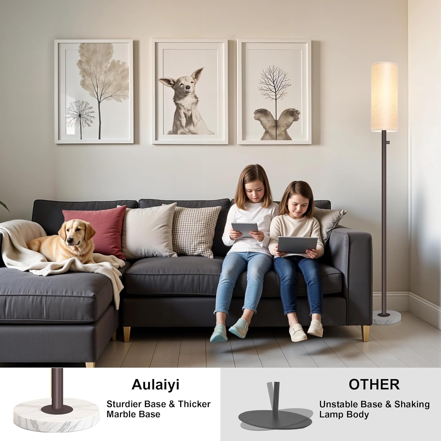 - Stable Marble Base & Space-Saving Design: Our modern tall standing lamp features a high-quality marble base for enhanced stability and added safety. This compact tall lamp fits easily in any corner or beside furnitureāideal for kids' rooms, next to bedside tables, office desks, nightstands, or sofas.