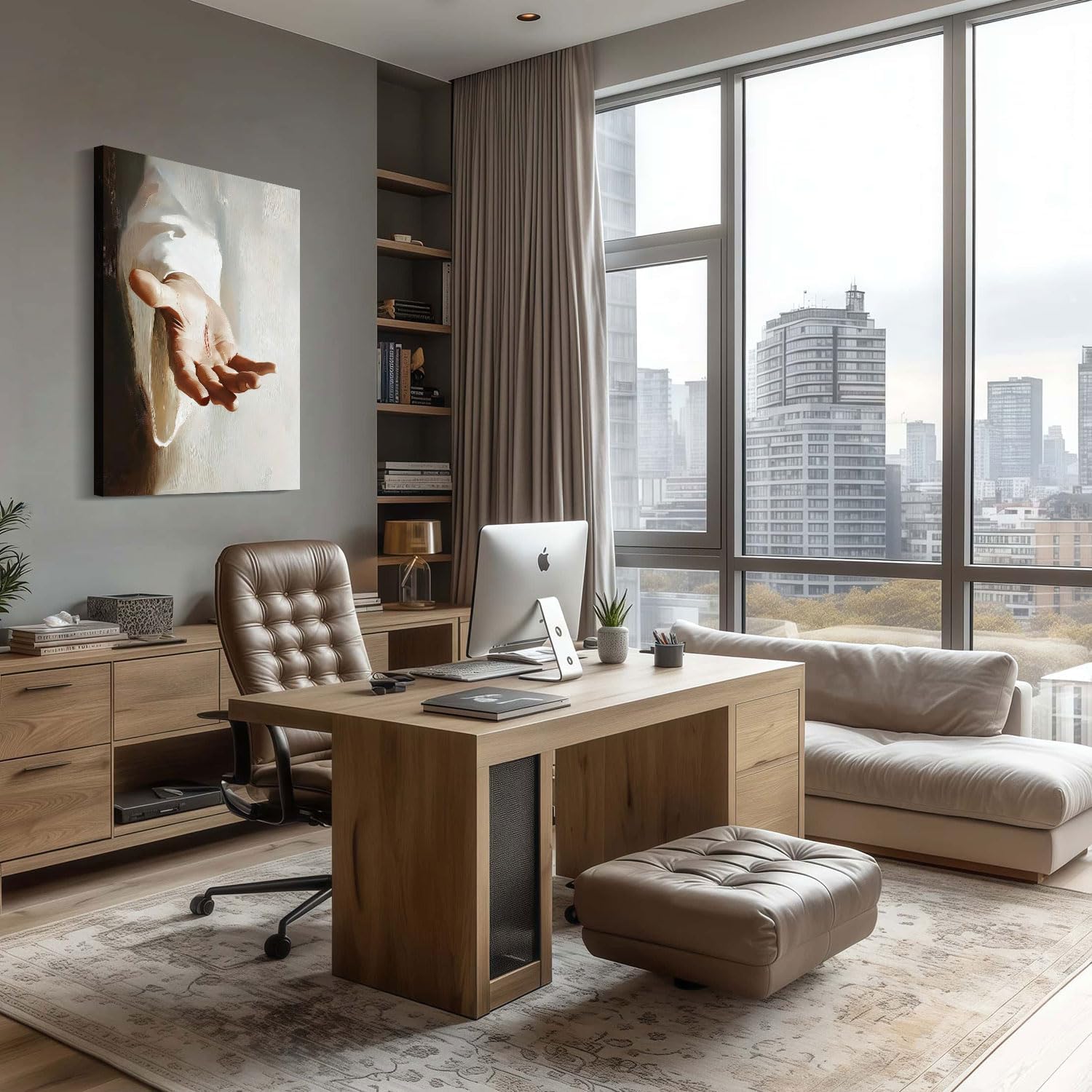 - Religious and Inspirational Art The image of Jesusā hand, symbolizing compassion, love, and guidance, brings a profound spiritual depth to your home or office. This artwork is perfect for anyone who wants to express their faith and devotion through beautiful art.
