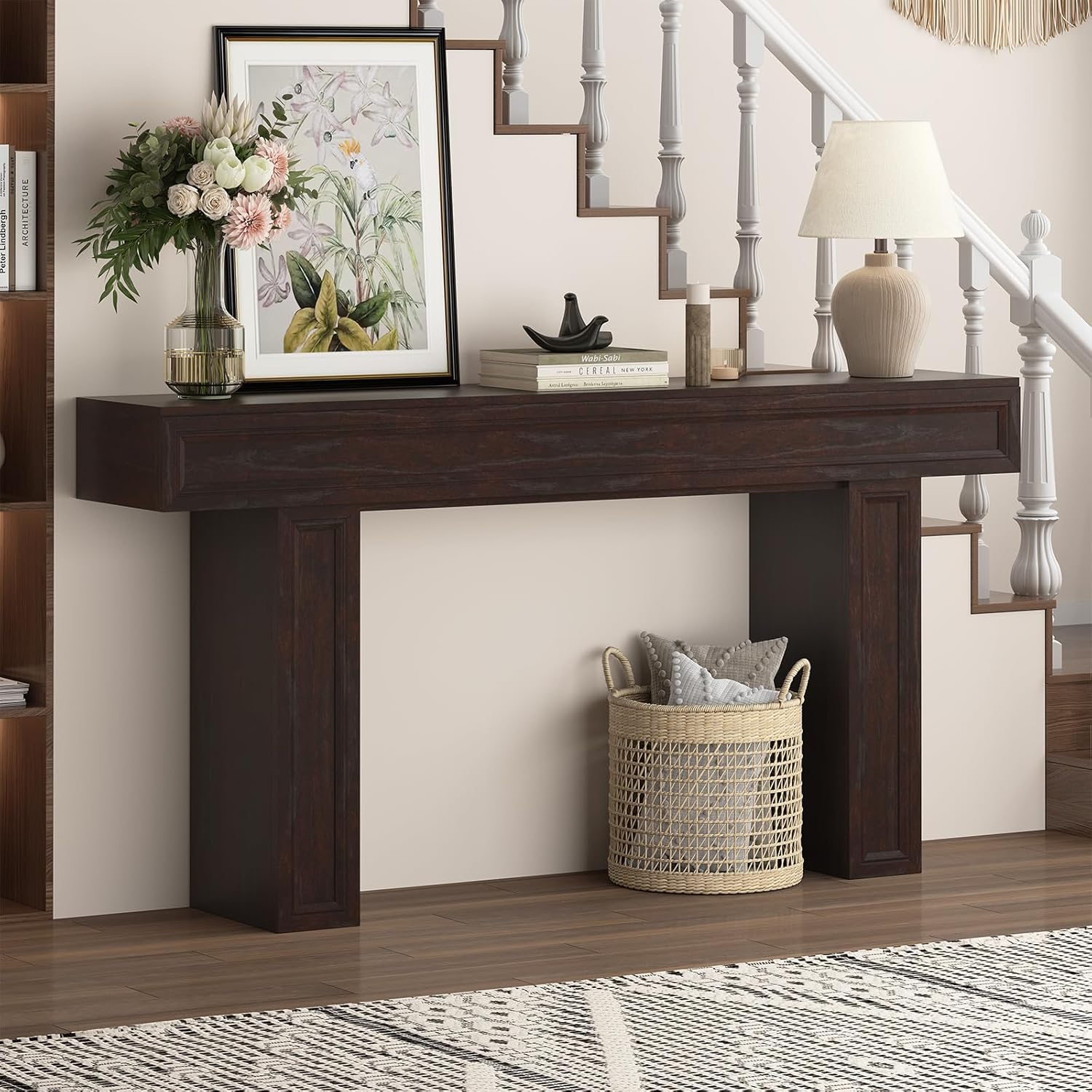 Rresyet 63 Inch Long Console Table, Sofa Table Behind Sofa, Wooden Entryway Table, Farmhouse Entryway Table for Entry, Hallway, Living Room (Cherry)