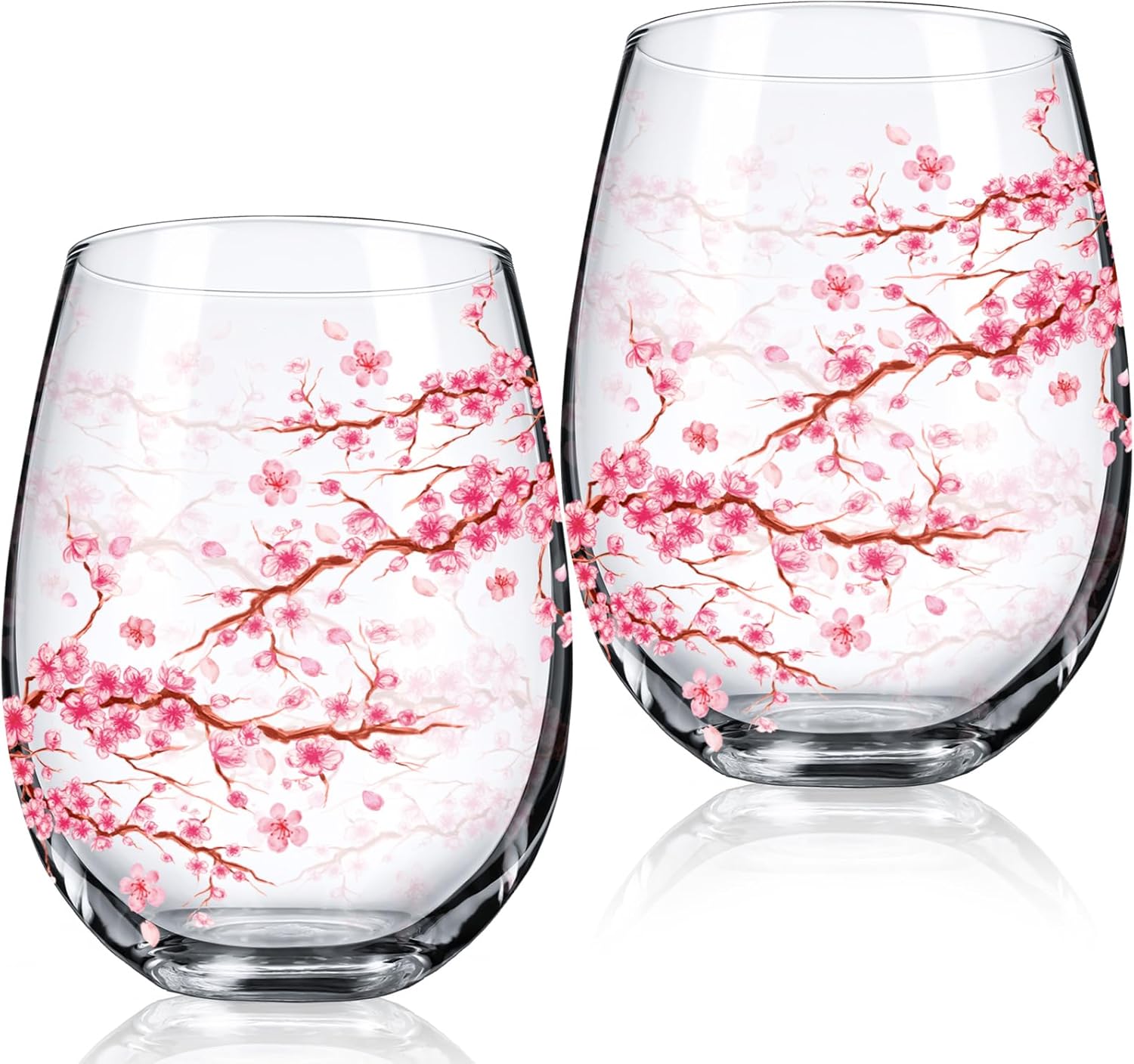 - Package Includes: you will receive 2 cherry blossom stemless wine glasses; This beautiful floral wine glass will enhance your wine tasting or other beverage experience, allowing you to feel the fresh breath of blooming season when drinking, and immerse yourself in a relaxing and pleasant time