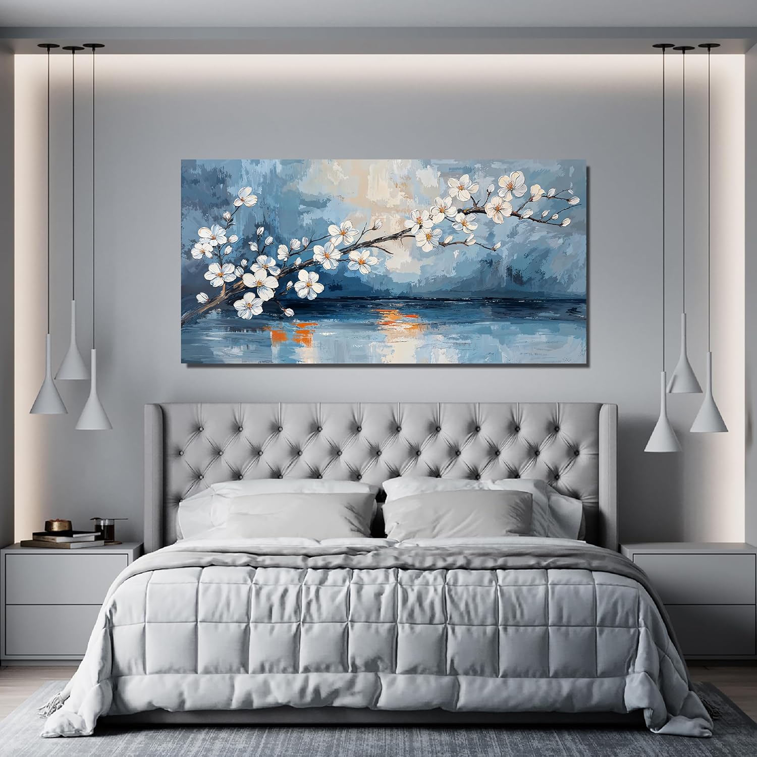 Canvas Wall Art Decor Vintage Coastal Wall Art Decorations White Flower Wall Art Prints Wall Art Pictures for Living Room Canvas Art Wall Decor Sunset Artwork for Walls Bedroom Office Decor 20" X 40"