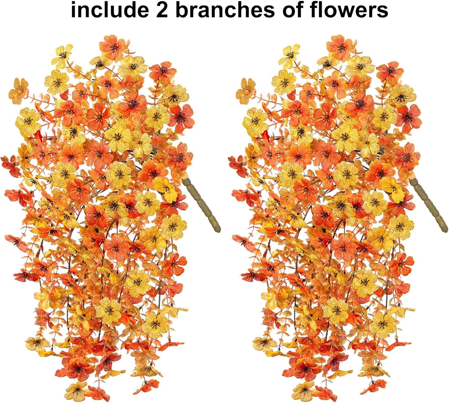 INSPRING Artificial Fall Flowers for Outdoors Decoration, 2Pcs Fake Fall Light Orange & Yellow Hanging Flowers, Faux Autumn Decor for Porch Patio Balcony Planter, Realistic Arrangement