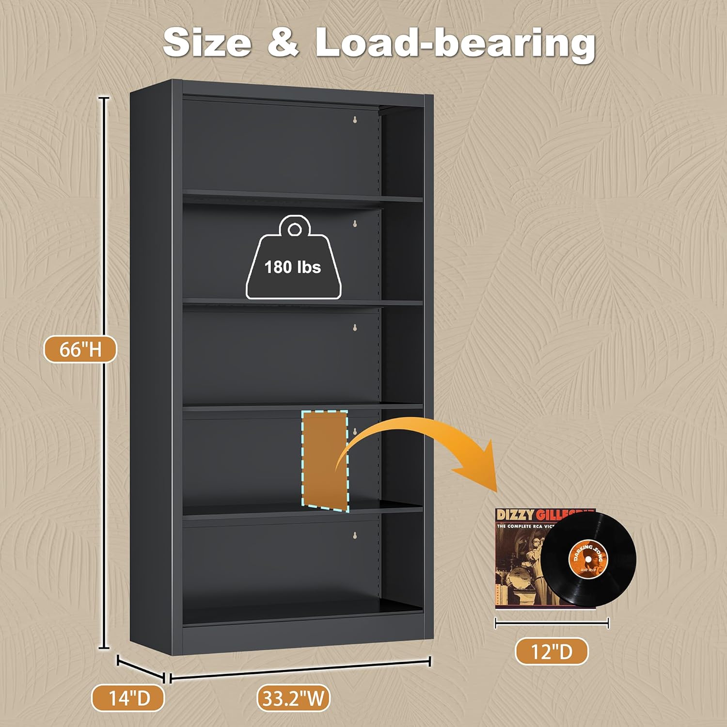 - ăSpace-Smart Storage SolutionăLibrary bookcase has a large space. The total size of the bookshelf is 66 "H * 33.2" W * 14 "D. Large storage unit bookcase for vinyl records. Wide storage shelf has a large display space to meet the needs of work and life. While storing more DVDs, Blu-Rays, videogames, CD'sďźmusic, movie, garage kit, files on the deep bookshelf, there is no need to worry about items falling off due to the spacious space.