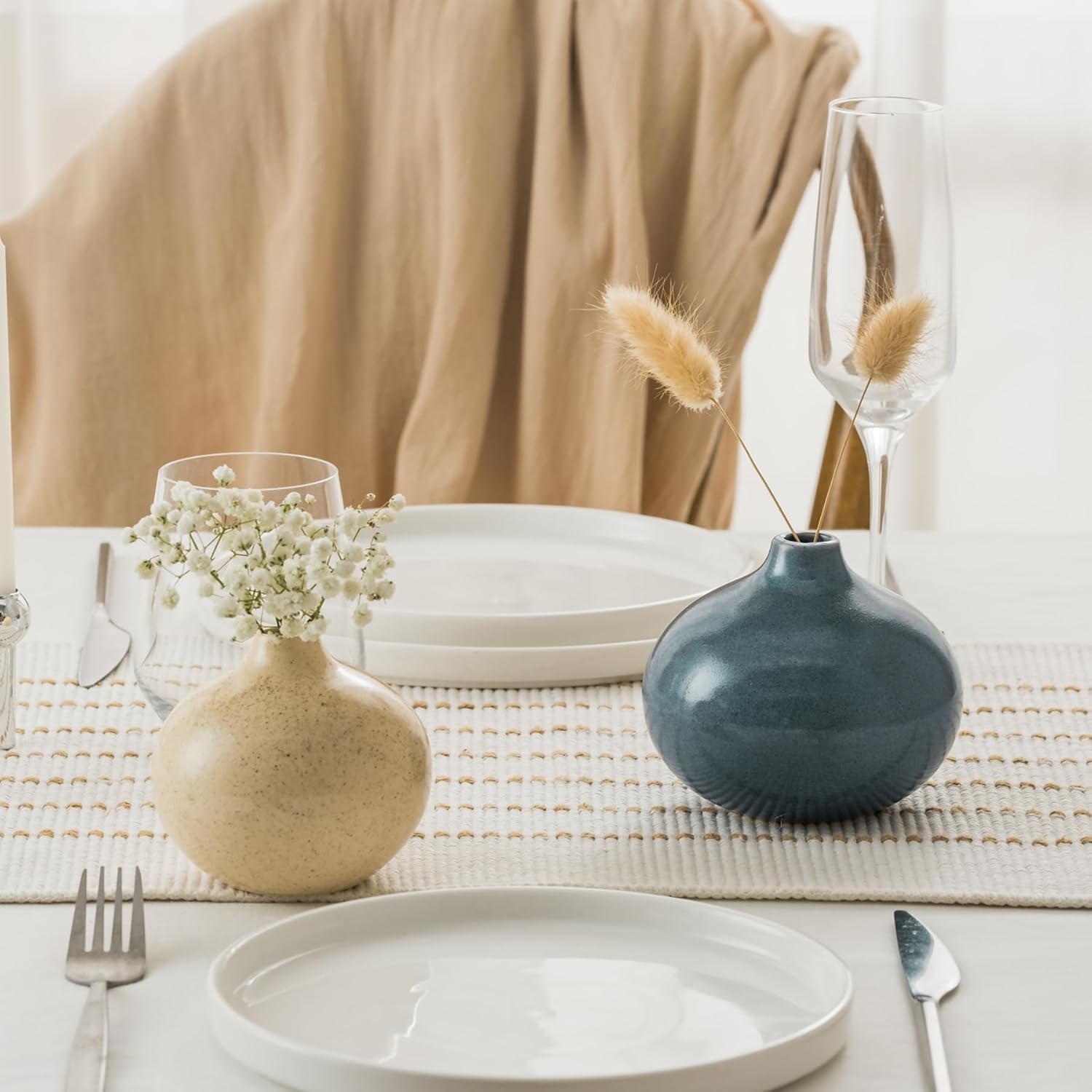 - 【Small Vase】 This set includes three mini flower vases in sizes 4.3" x 3.9", 3.5" x 3.2", and 3.1" x 2.8". Perfect as a centerpiece or displayed individually, these small flower vases bring modern farmhouse and minimalist charm to any room.