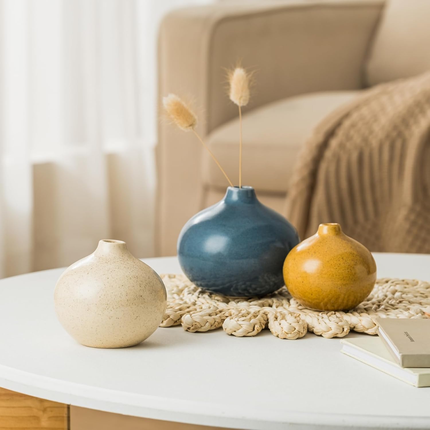 - 【Matches Any Home Decor Style】 This decorative vase set features neutral tones, effortlessly matching boho, farmhouse or minimalist decor styles. A stylish accent for the living room, kitchen, or bedroom.