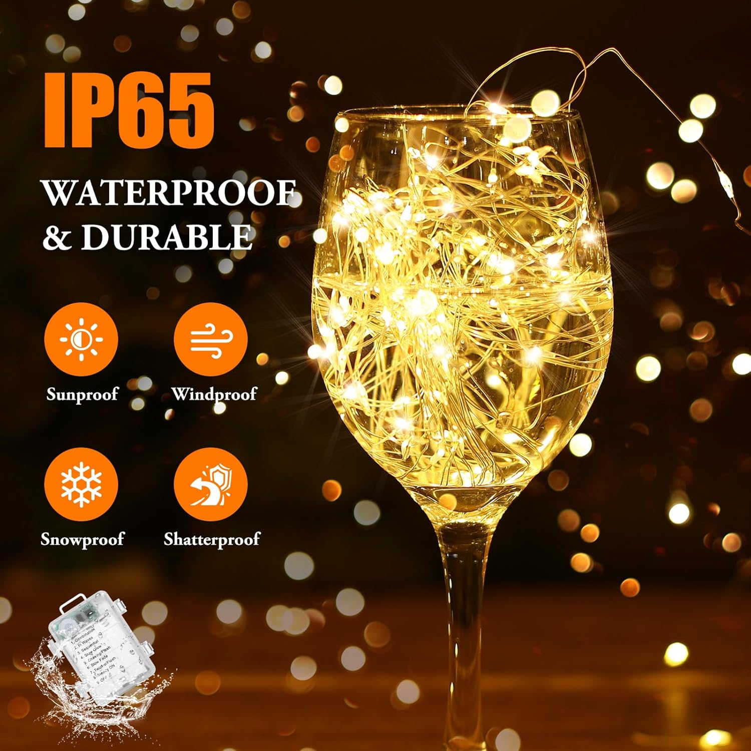 - Waterproof for All Weather Use: The battery operated fairy lights feature IP65 waterproofing, while the compact battery box is rated IP44 with a waterproof seal, making it ideal for outdoor use in any weather condition