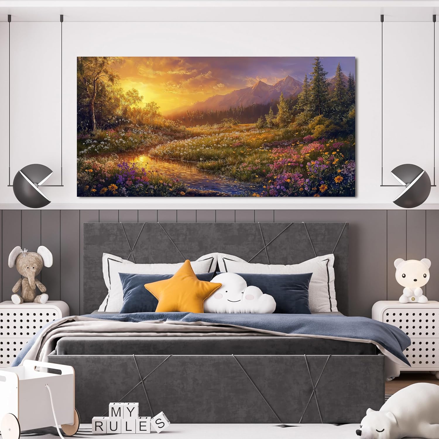 - 【Perfect Home Room Wall Decoration Idea】This canvas wall art decor is perfect for adding a decorative touch to any room, great idea for home wall decoration, such as for living room, bedroom, kitchen, game room, lakeside cabin, guest room, office, etc.