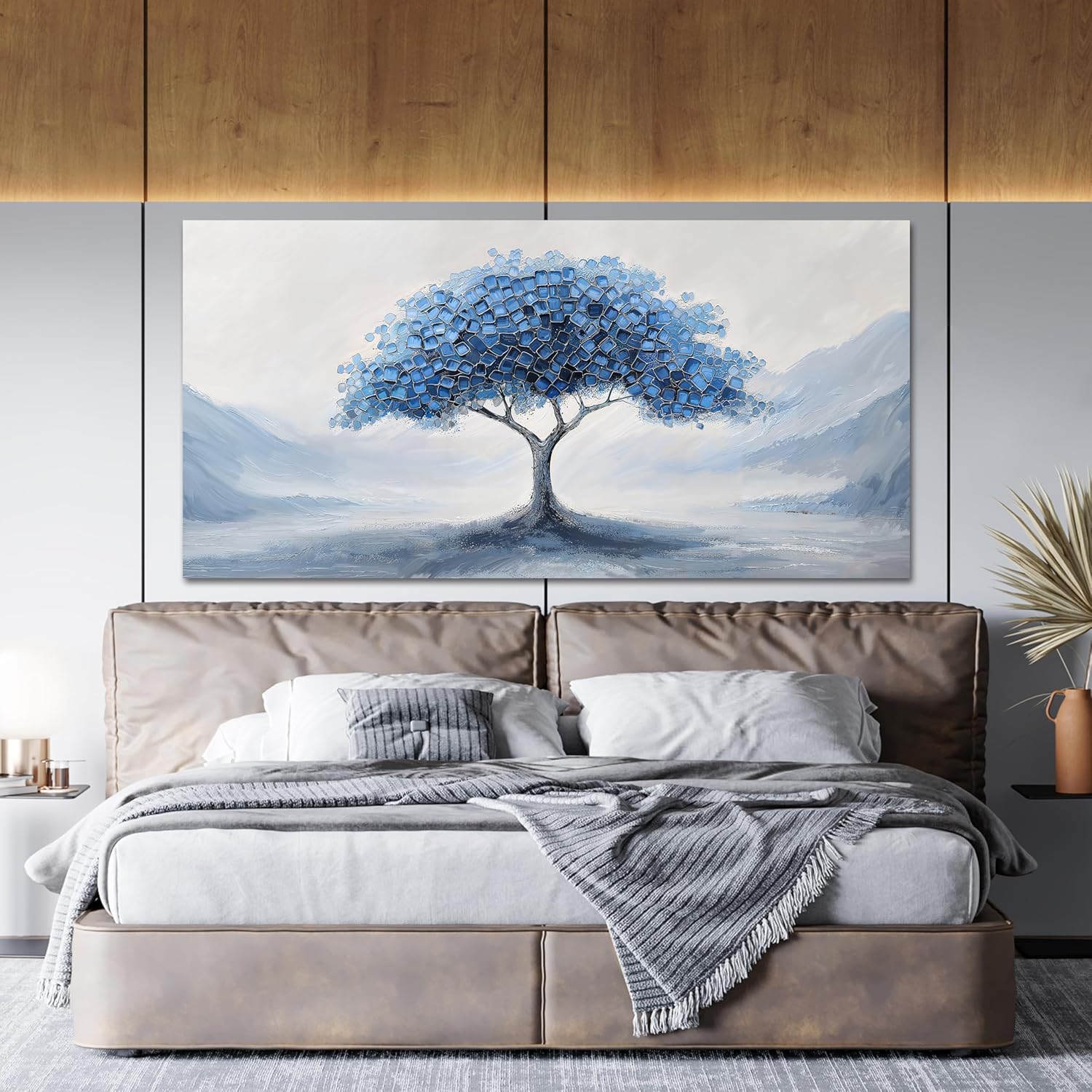 Canvas Wall Art Decor Wall Art Pictures for Living Room Abstract Canvas Art Wall Decor Tree of Life Wall Art Prints Blue White Wall Art Decorations Artwork for Walls Bedroom Home Decor 20" X 40"