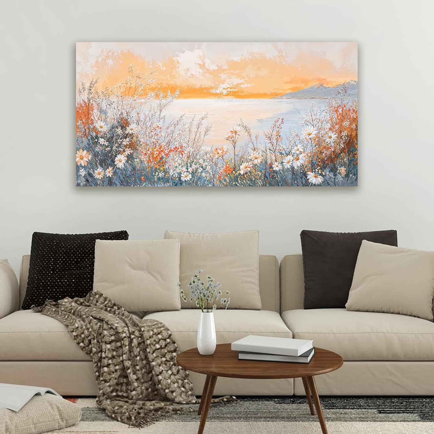 Canvas Wall Art Decor Wall Art Pictures for Living Room Artwork for Walls Coastal Beach Wall Art Prints Canvas Art Wall Decor Vintage Wildflower Wall Art Decorations Bedroom Home Decor 20" X 40"