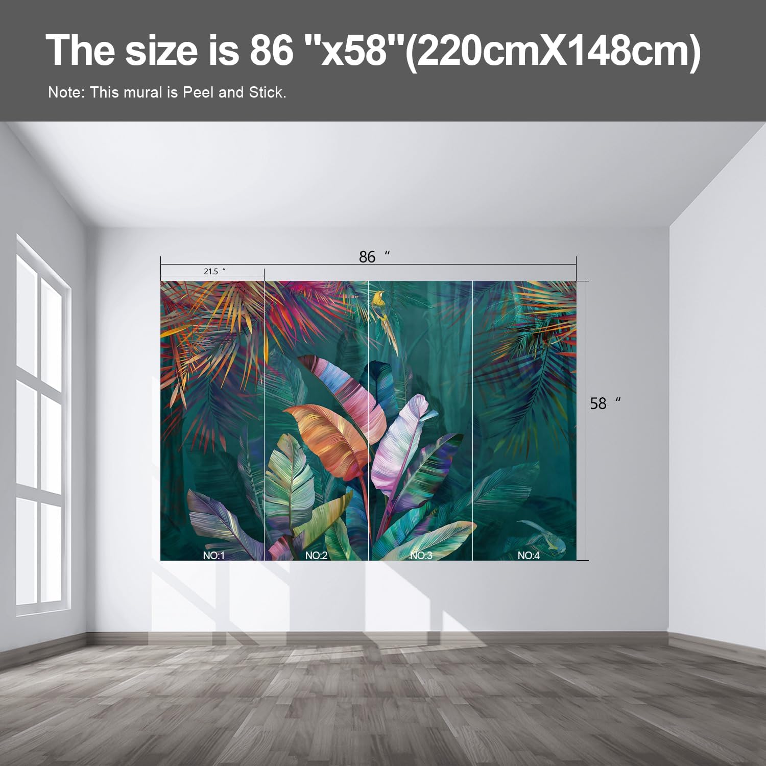 Colorful Banana Leaf Wall murals Peel and Stick Wallpaper for Bedroom Living Room - 58"x86"