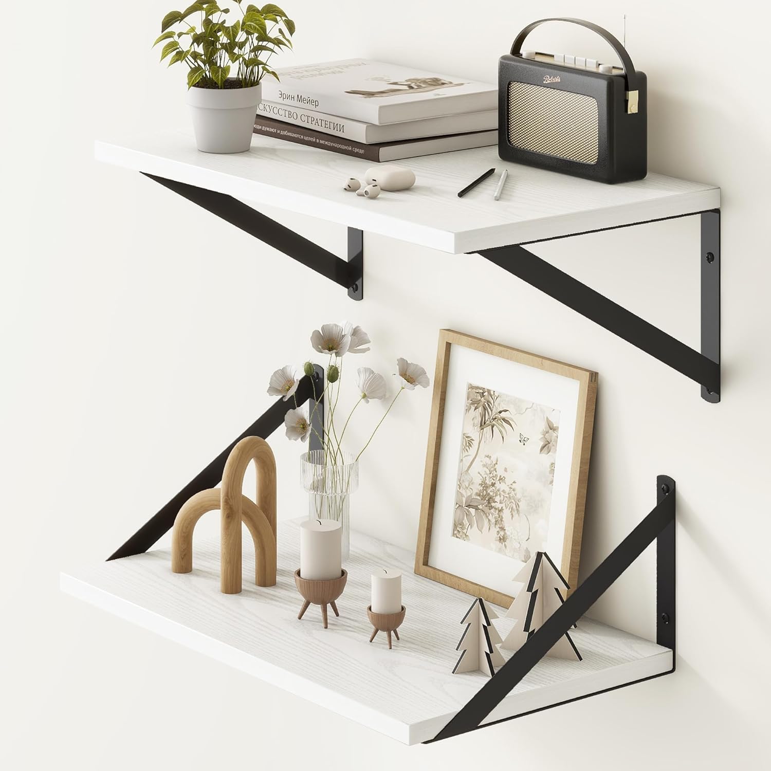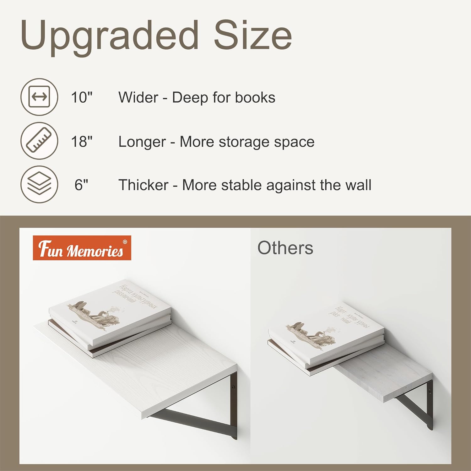 Fun Memories White Floating Shelves 18 Inch Long, Rustic Floating Shelf with Brackets, 10 Inch Deep Wall Shelves, White Bathroom Shelves, 18 x 10 Storage Shelf for Kitchen, Living Room, Set of 2