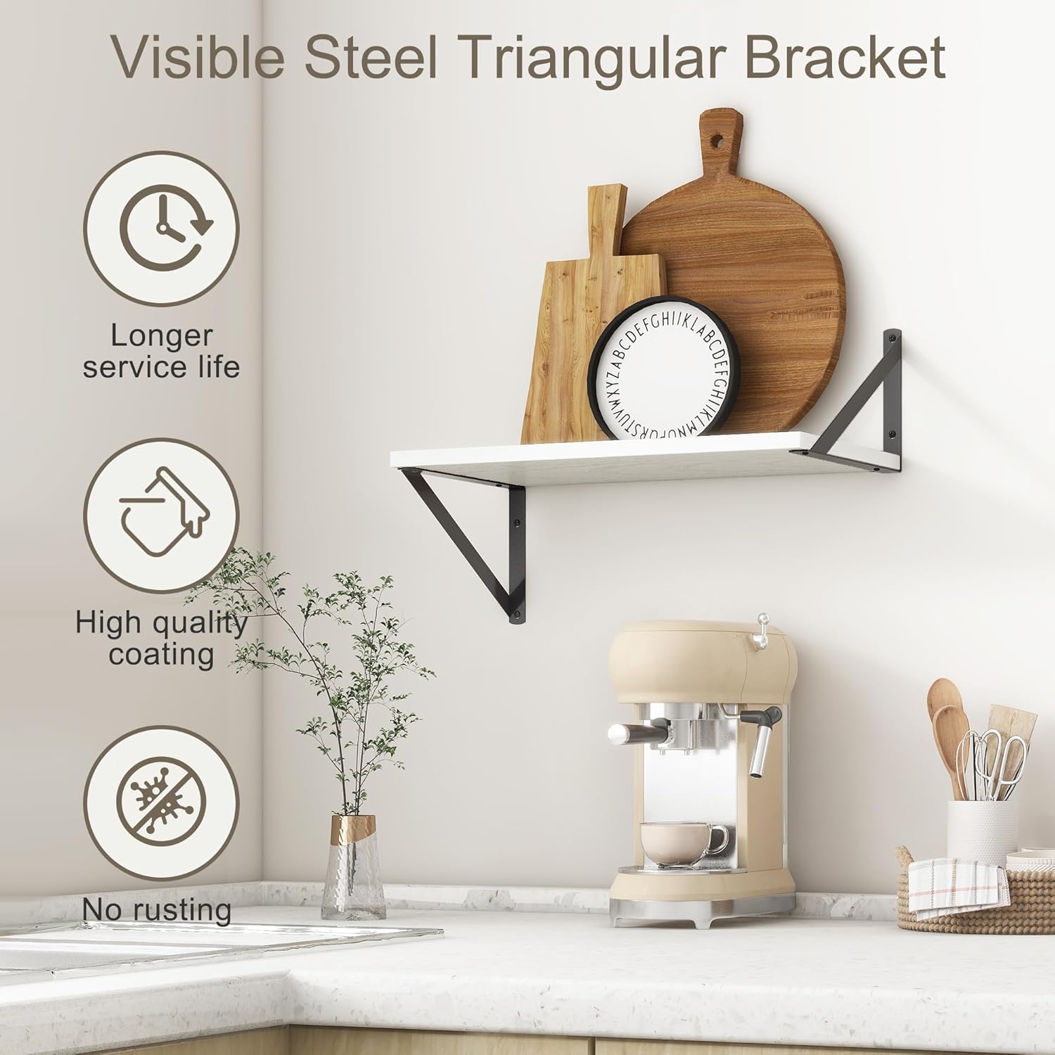 - ăFARMHOUSE RUSTIC WALL SHELFăThese floating shelves are made of premium engineered wood board and visible triangular bracket. The rustic wooden grain surface add character and warmth to any modern or traditional interior with these deep floating shelves, contrast shelves at staggering heights on the wall or mount side-by-side or in the corner for a clean streamlined look.