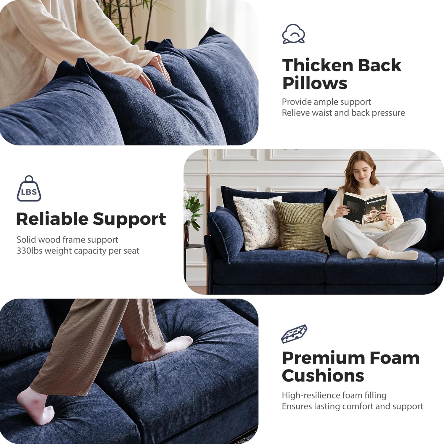 - š” Premium Chenille Fabric - The modern sofa is upholstered in premium chenille fabric that feels luxurious to the touch, offering both comfort and durability. The material is not only soft and inviting but also non-pilling and won't stain, ensuring long-lasting quality.