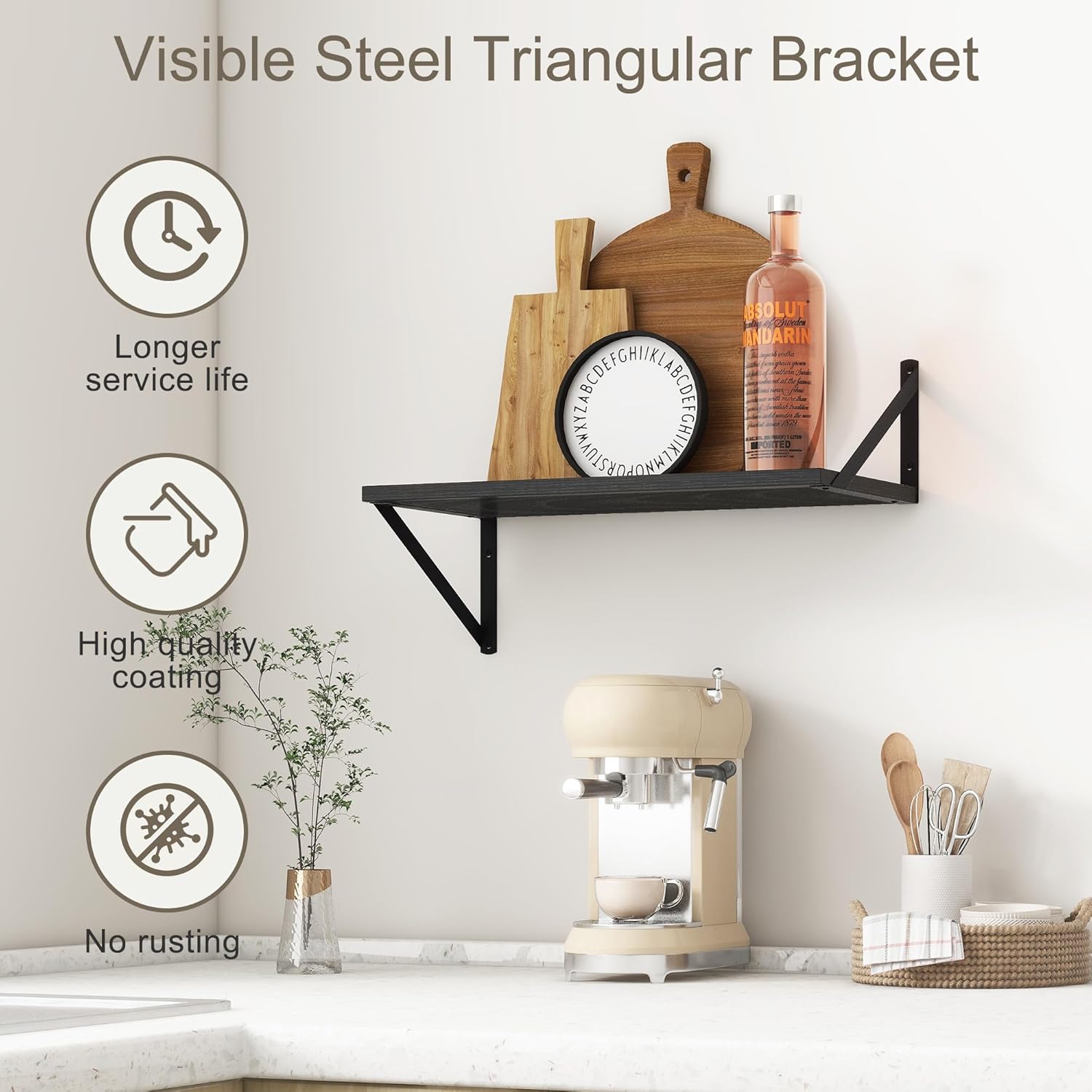 - ăFARMHOUSE RUSTIC WALL SHELFăThese floating shelves are made of premium engineered wood board and visible triangular bracket. The rustic wooden grain surface add character and warmth to any modern or traditional interior with these deep floating shelves, contrast shelves at staggering heights on the wall or mount side-by-side or in the corner for a clean streamlined look.
