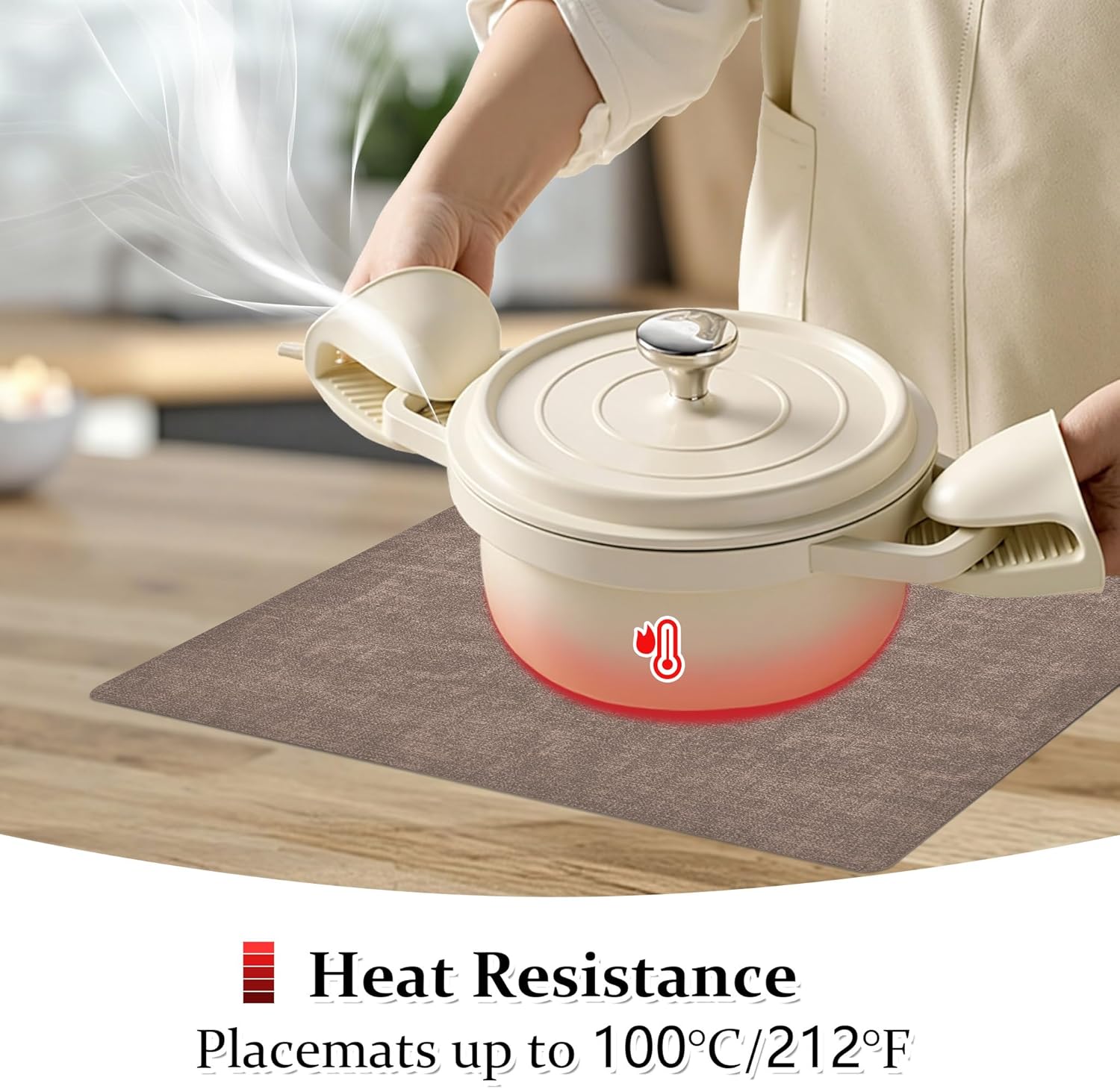 - Versatile for Indoor & Outdoor Use:From kitchen tables to patios and coffee shops, our placemats elevate any dining space. Available in a range of stylish colors to match modern, rustic, or minimalist décor. Perfect for daily meals, picnics, parties, and more.Can also be used as table mats, kitchen appliance mats.
