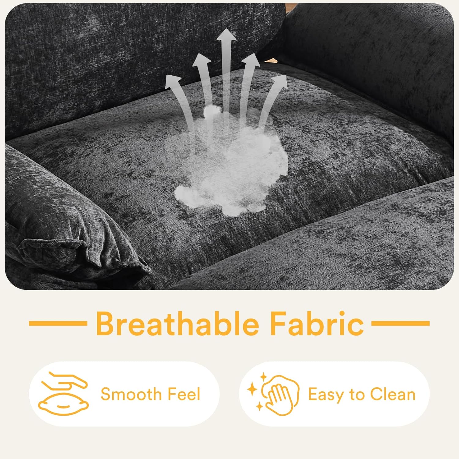 - Cloud-Like Comfort - This oversized couch features upholstered 2-layer seat cushions with high-resiliency foam, thick removable armrests, and a 24" deep seat, which provides a cloudy seating experience.