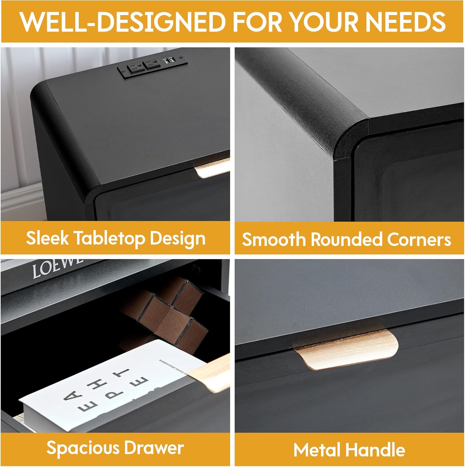 - 【Durable Structure with Stable Base】Built from sturdy wood and supported by reinforced metal legs, this nightstand provides a stable base and holds up to 50 lbs—designed for everyday functionality and durability.