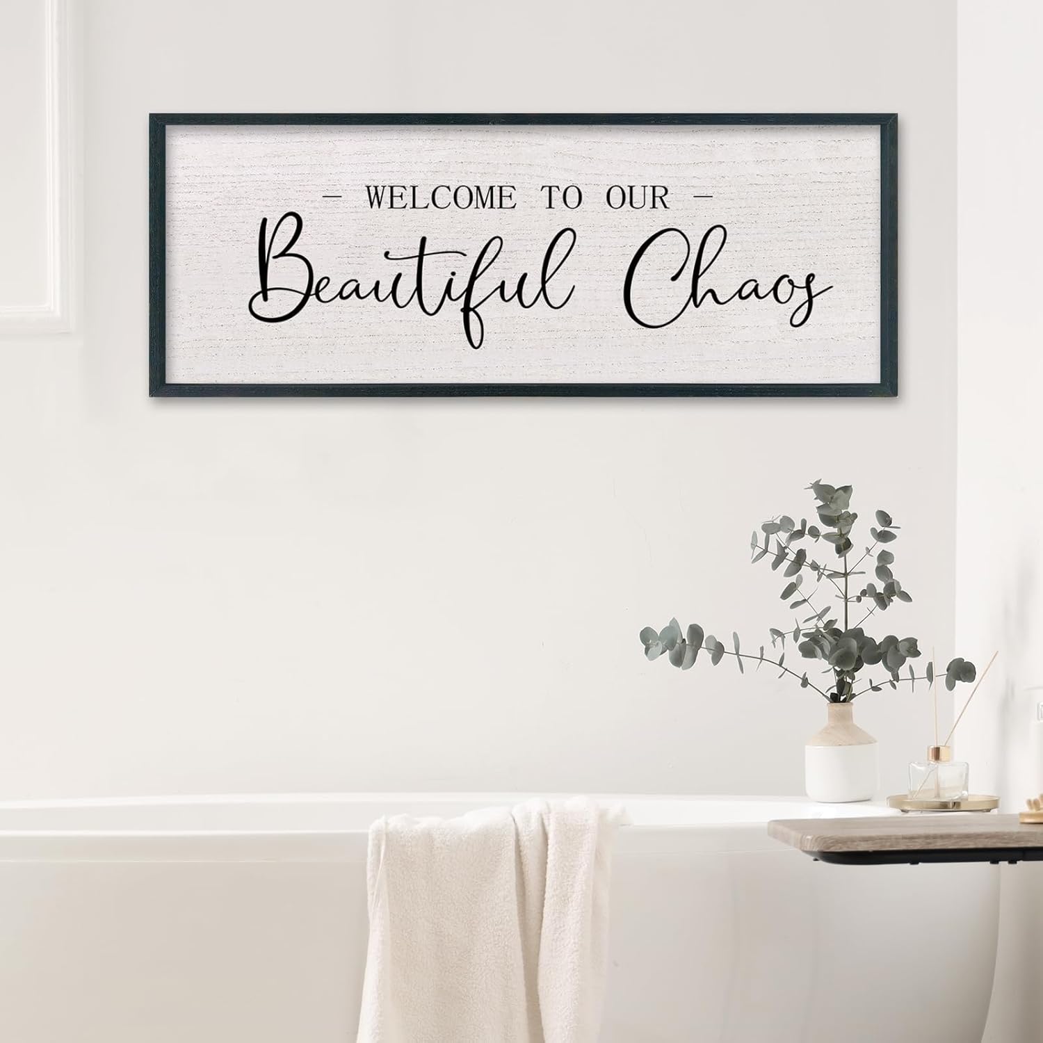 comurdyo Welcome To Our Beautiful Chaos Wall Decor Art 40"X15" for Home Entryway Sign Large Wood Framed Wall Hanging (Black)