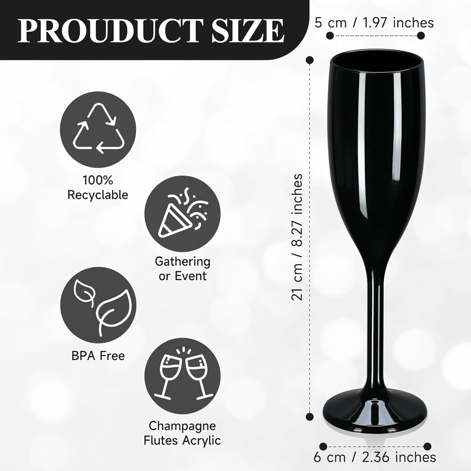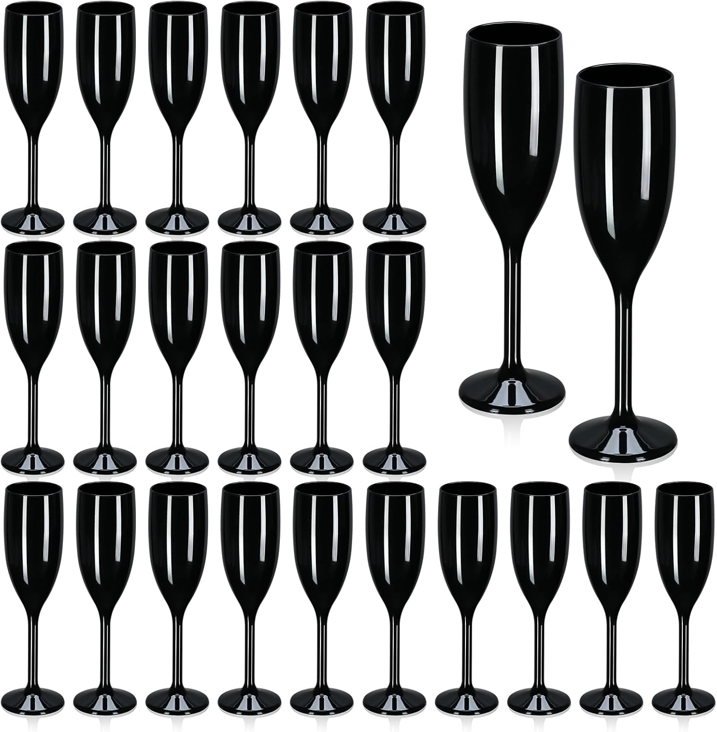 XUWAIDSGN Acrylic Champagne Flutes Toasting Glasses Unbreakable Mimosa Bar Reusable Wine Glasses Vintage Champagne Flutes Stemmed Drinking Cups 5.4 OZ for Christmas Birthday (24, Black)
