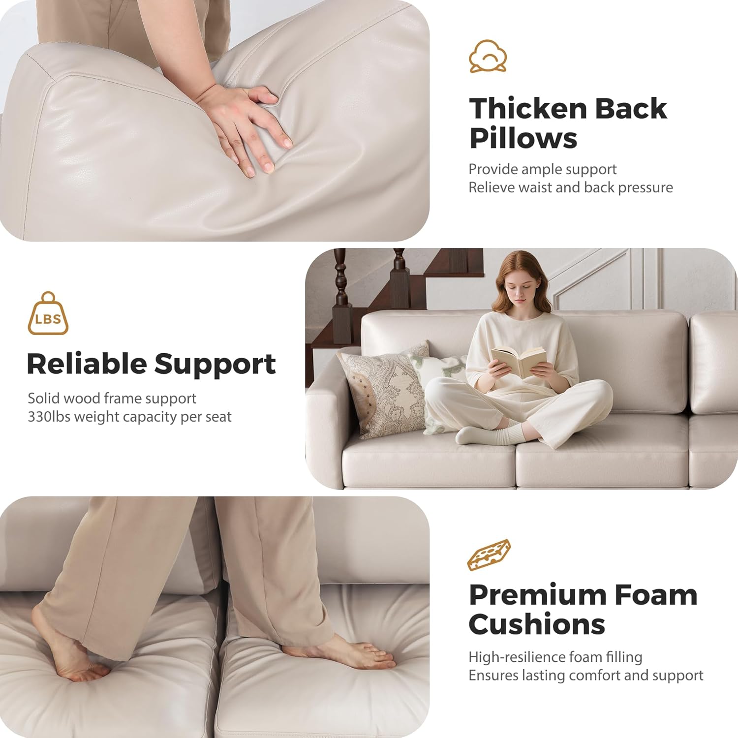 Faux Leather Oversized Accent Chair with Storage Deep Seat Single Sofa Large Reading Armchair for Living Room Bedroom Office Whitesand Set of 2