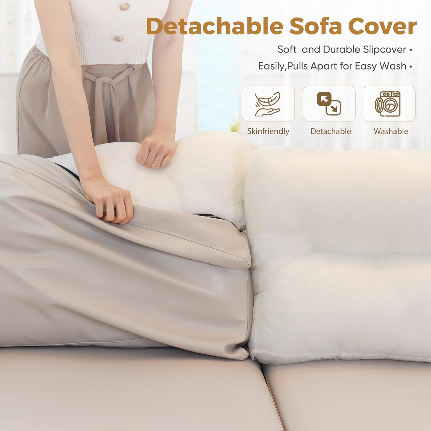Faux Leather Oversized Accent Chair with Storage Deep Seat Single Sofa Large Reading Armchair for Living Room Bedroom Office Whitesand