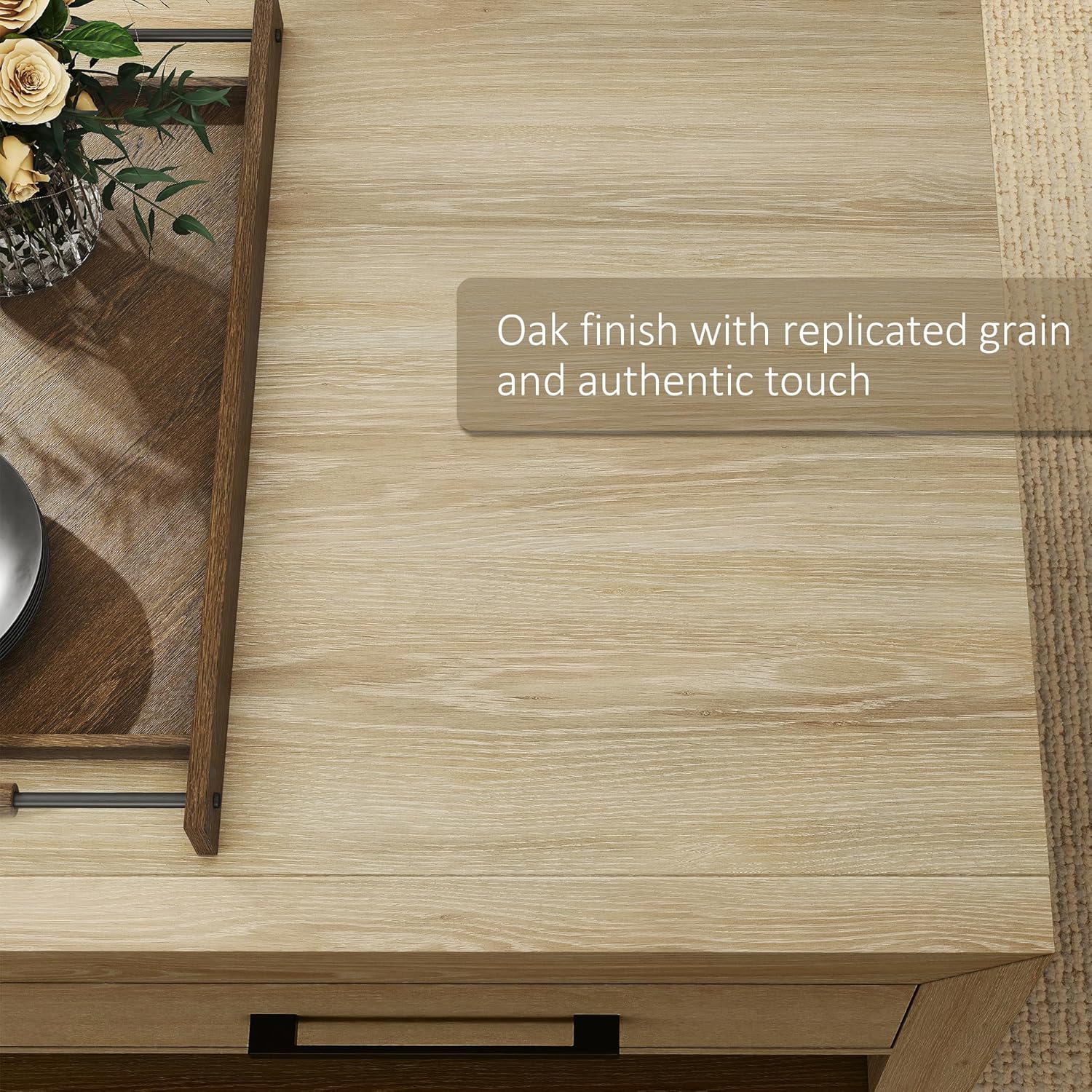- Ample Storage Space These large coffee tables come with 4 high-quality drawers. Each drawer has heavy-duty ball-bearing side glides (for quiet use) and metal bar pulls with a blackened steel finish. Plus, the open panels let you place items freelyâfor maximum convenience.