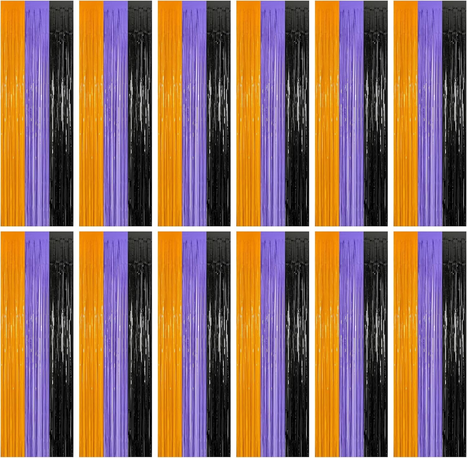 12 Pack Halloween Decor, 3.28 FT x 7.05 FT Orange Purple Black Fringe Curtains, Funny Wall Backdrop Photo Booth Backdrop Party Streamer, Halloween Foil Decorations Photo Booth Props