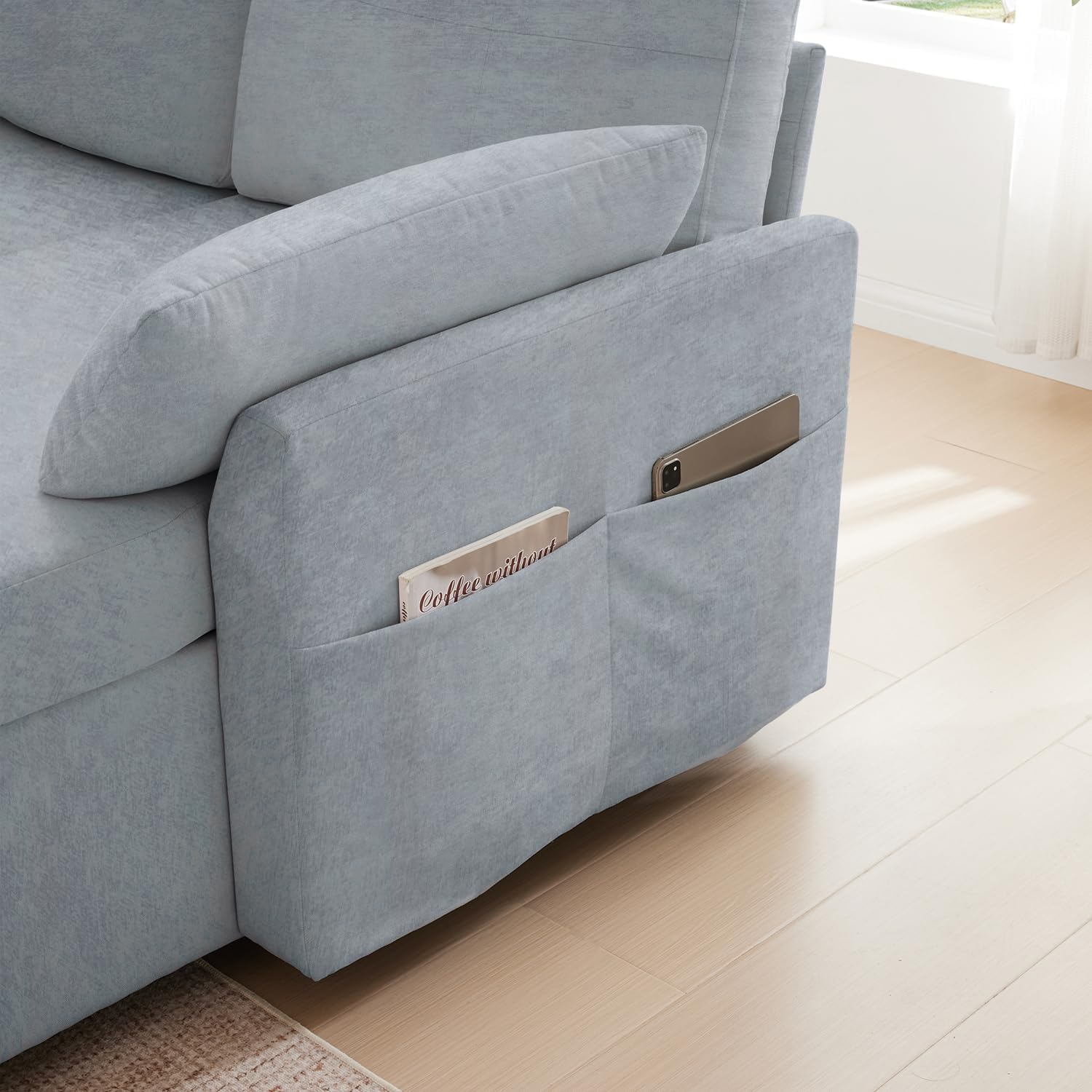 Waxberry Sectional Sofa Couch, Pull Out Couch Sleeper Sofa Bed with Storage for Living Room, Reversible Chaise, Side Pockets & Dual USB/Type-C Ports, Grey