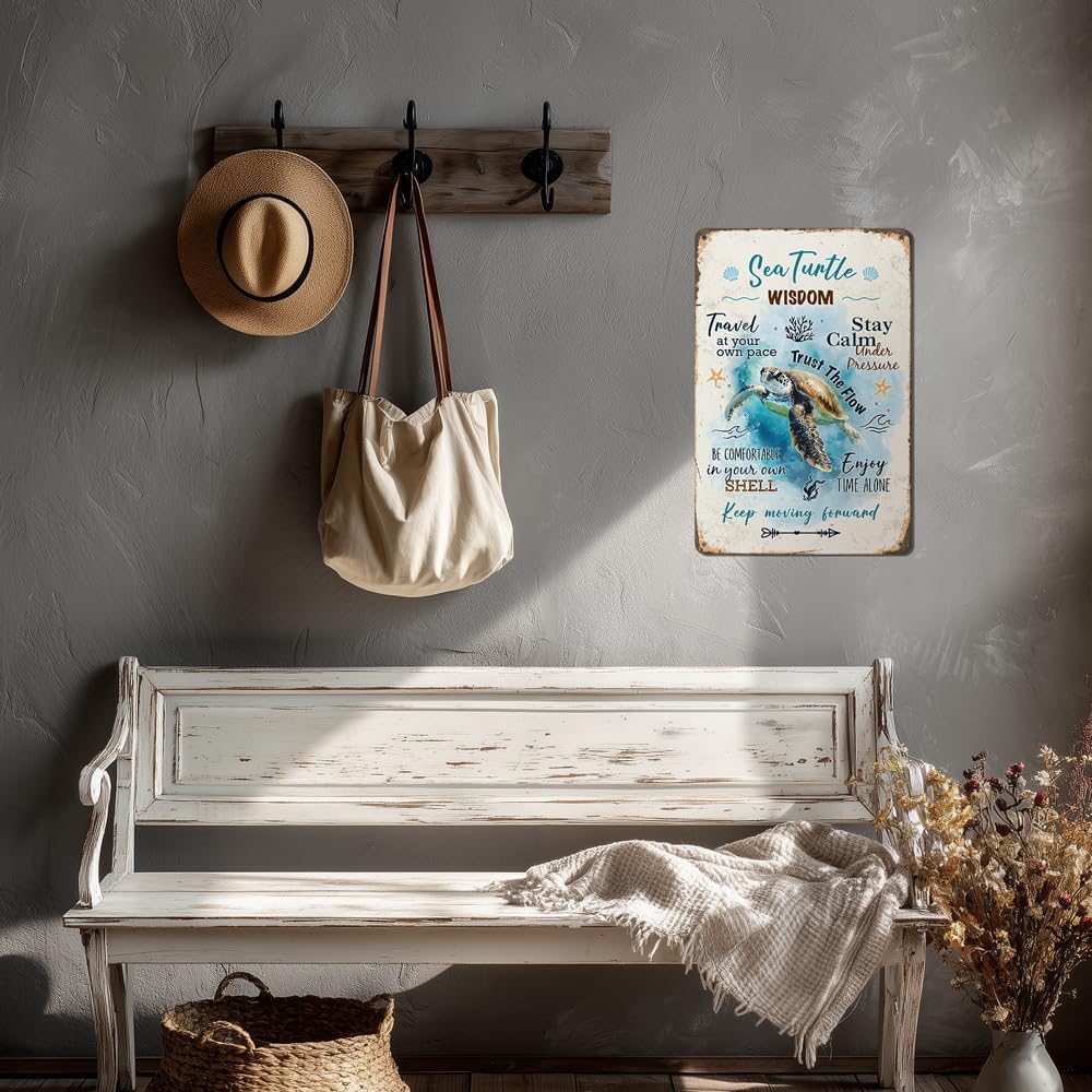 - Inspirational Wall Decor:This vintage sea turtle sign design with positive message,bright colors,will be an eye catcher decorations.Please note that any rust or scratch marks is part of the design and not actual rust