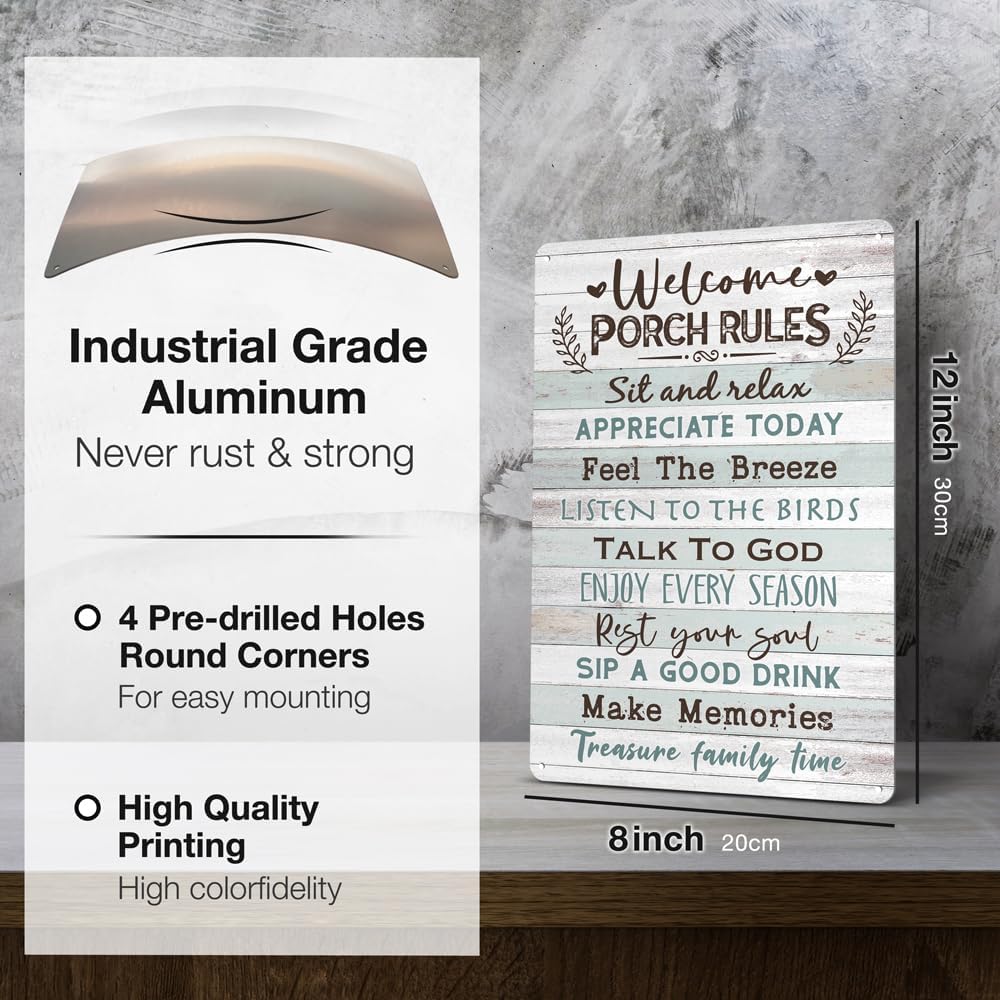 Heuhuww Heuhuww Welcome Porch Rules Tin Sign,Vintage Patio Wall Art Decor,Outdoor Rustic Farmhouse Home Patio Backyard Decor12" x 8"(H20)