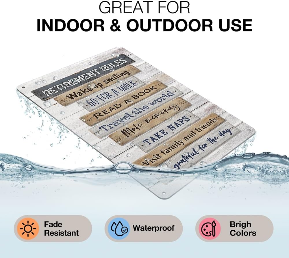 - Retirement Decoration:This vintage metal sign design with positive message,bright colors,will be an eye catcher decorations.Perfect for retirement party decorations funny or as a keepsake retirement sign to honor the retireeās new chapter