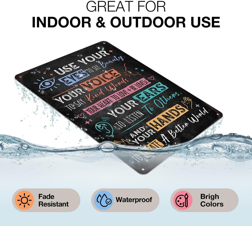 Heuhuww Vintage Positive Energy Wall Decor-Use Your Eyes To See Beauty Your Voice To Say Kind Words Metal Sign for Home Classroom Cafes Bedroom Positive Energy Gifts 8"x12"(H26)