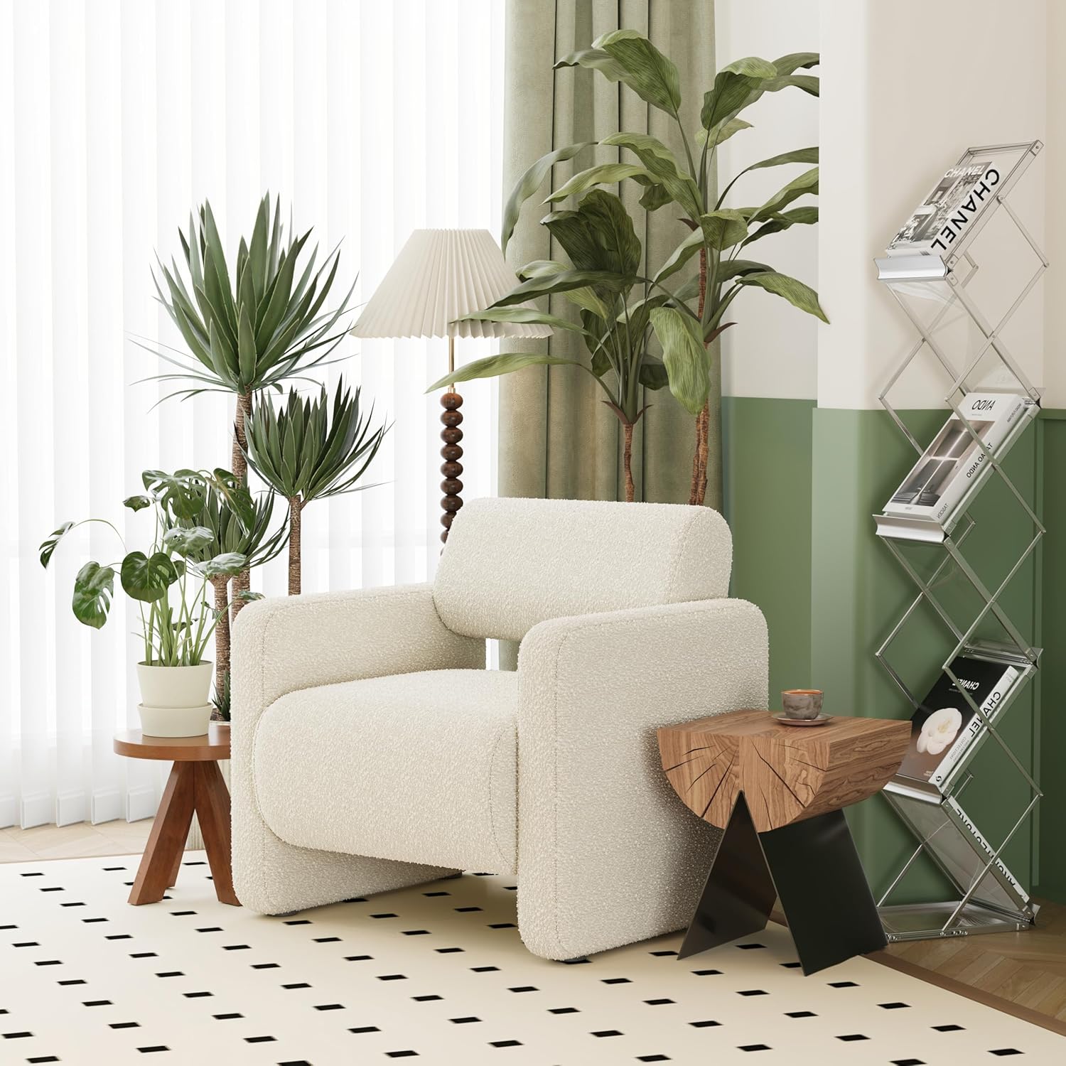Accent Chair, Modern Boucle Fabric Armed Chair, Comfortable Single Sofa Chair for Living Room, Solid Wood Frame, Comfy Side Chair for Bedroom, Office, Reading (Beige)