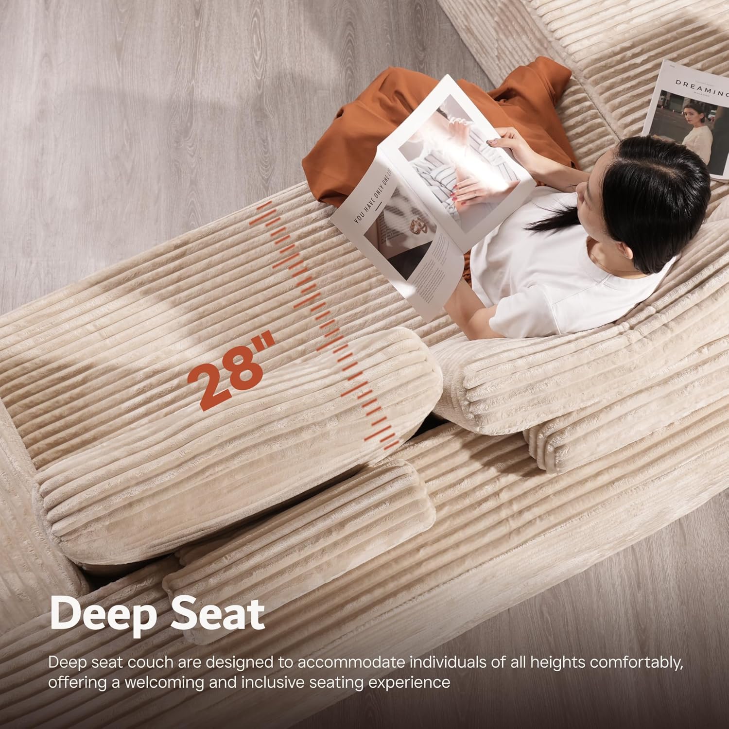 ovios Sectional Cloud Couch for Living Room, Modular Floor Sofa with Plush Corduroy, No Assembly Required, Big Comfy Couches Set with Fluffy Memory Foam, Stupendous U Shaped Sofas with Chaise, Grey