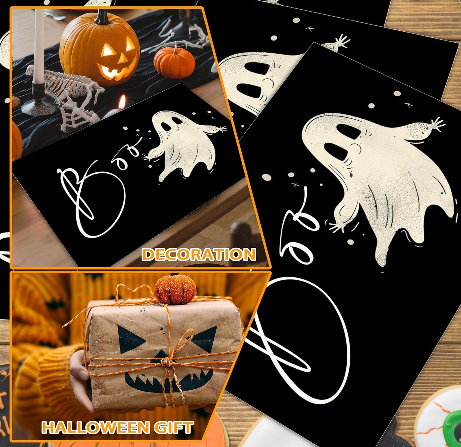 Funny Halloween Placemats Set of 4, 12x18 Inch Boo Decorative Table Mats, Washable Heat Resistant Place Mats for Kitchen Dining Table, Halloween Themed Decoration for Home-B03
