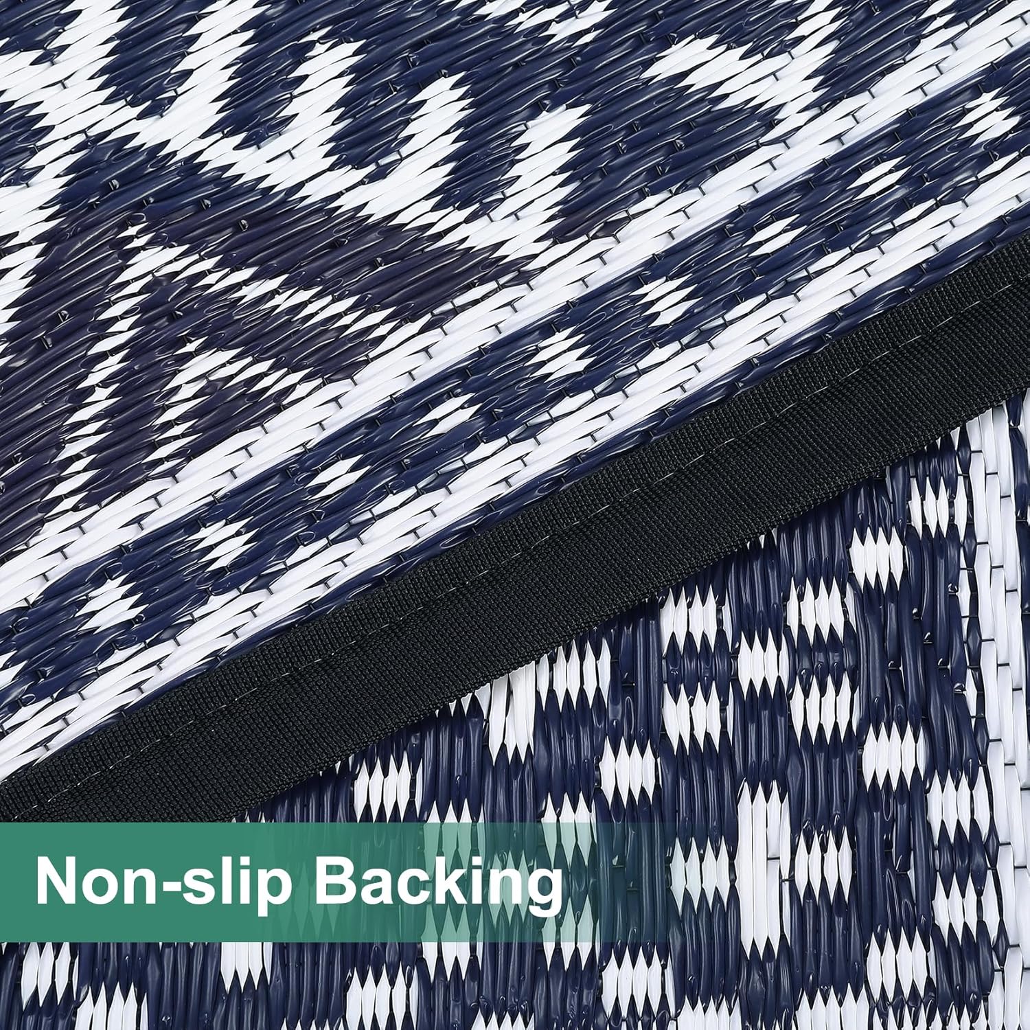 GAOMON Outdoor Rug Waterproof 8'x10', Reversible Outdoor Plastic Straw Rug, Boho Patio Rug, Indoor Outdoor Carpet, RV Mat Outside for Patio, Camp, Picnic, Balcony, Deck, Dark Blue/White(Bohemia)