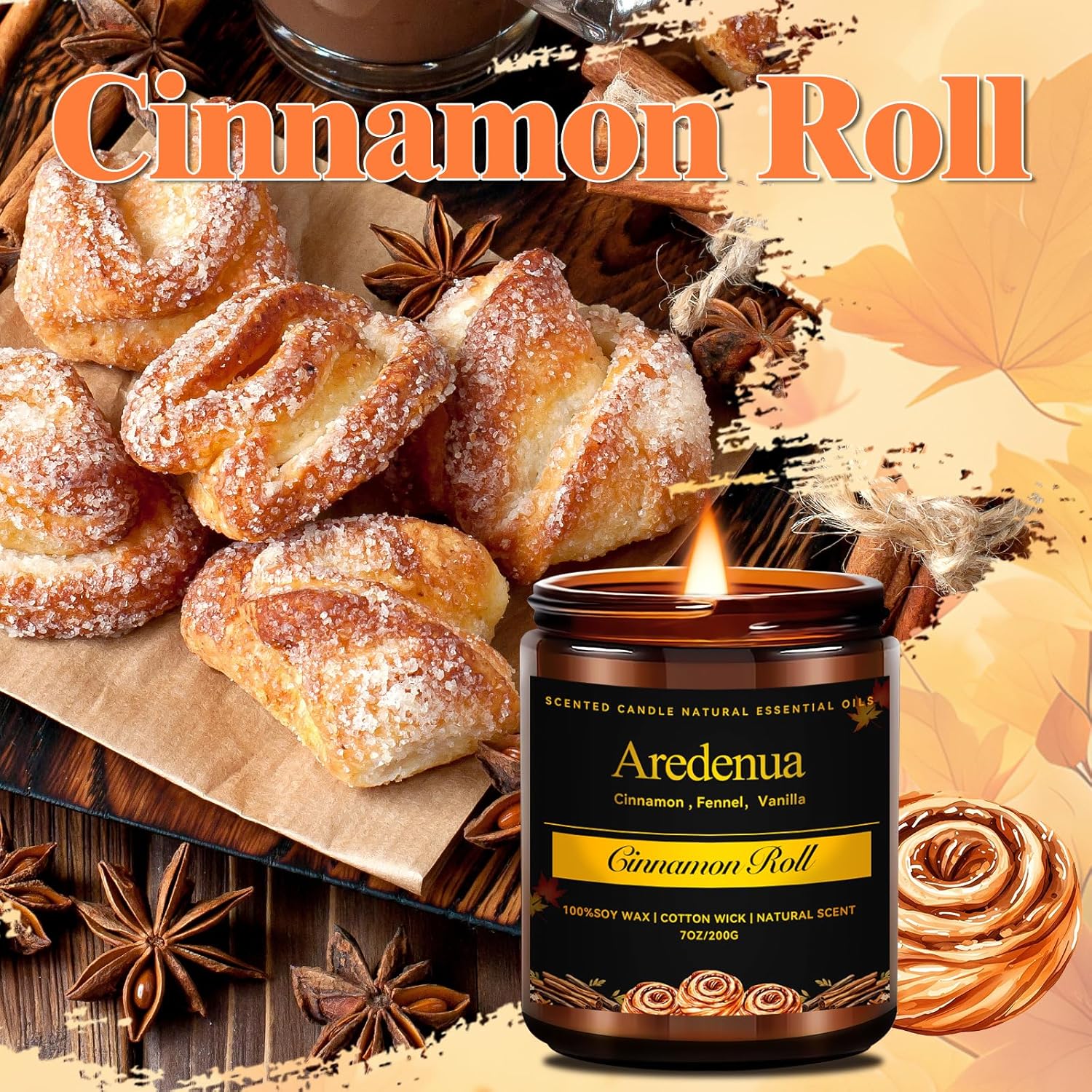 Cinnamon Roll Candles | Fall Cinnamon Candle - Autumn Scented Candle for Home, 7oz Soy Candles for Home Scented, Fall Gifts for Women & Men, Cozy Seasonal Sweet Scent for Autumn & Thanksgiving
