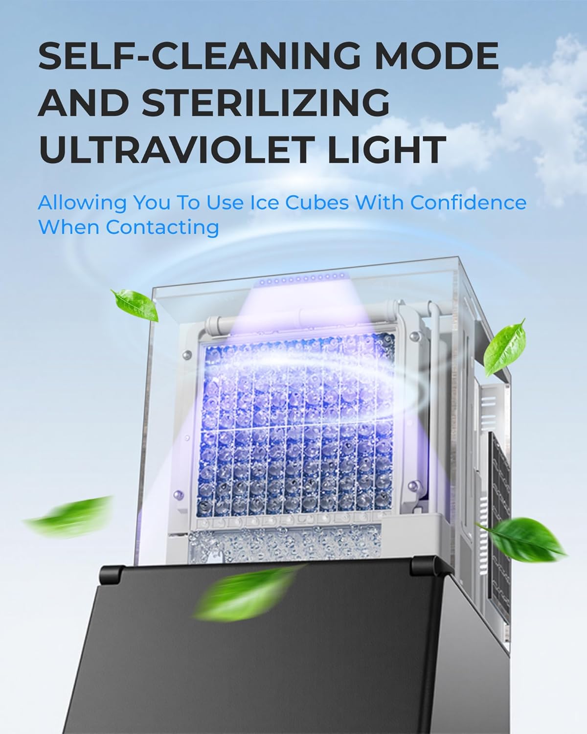 - 🧊[ Clean and Hygienic Ice Making – Self-Cleaning Mode and Water Filter ] - Our industrial ice maker features a self-cleaning mode that easily cleans the internal parts of the machine. It also comes with a water filter to ensure clean, hygienic ice, meeting strict food safety standards. All components in contact with water and ice are made of food-grade materials. Note: The self-cleaning function only supports partial cleaning; a complete cleaning requires disassembling certain parts of the machine.