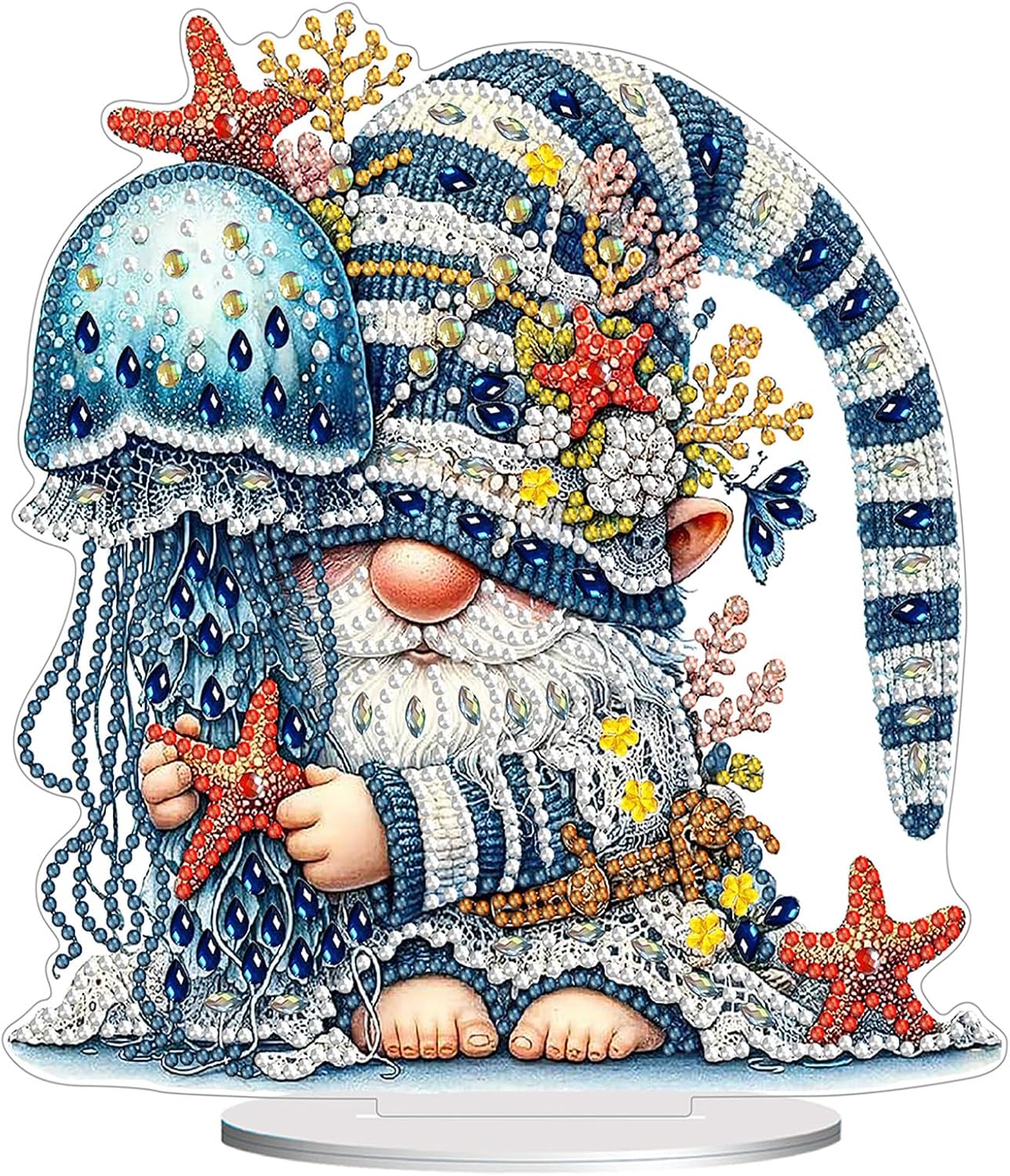 Diamond Painting Kits for Adults Beginners, 5D Full Drill Dwarf Ocean Crystal Art Desktop Ornament, DIY Single Sided Home Office Desk Decor, Creative Craft Gift Set with Tools