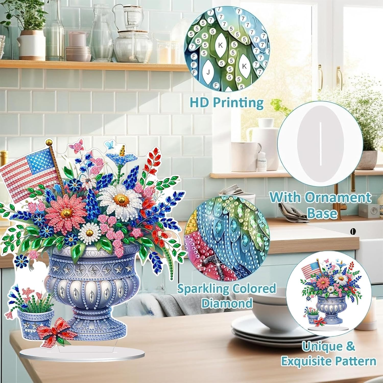 Diamond Painting Kits for Adults Beginners, 5D Full Drill Flowers Crystal Art Desktop Ornament, DIY Single Sided Home Office Desk Decor, Creative Craft Gift Set with Tools