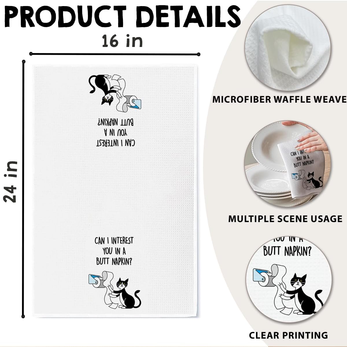 - Multiple Uses: Functional as a tea towel, dish cloth, or bathroom hand towel—blends humor and practicality in every room.