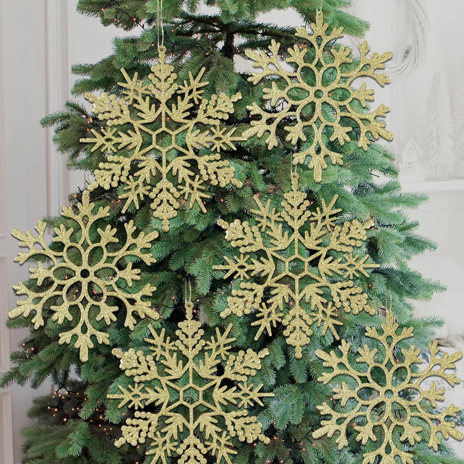 - Large Gold Snowflakes: Our Christmas snowflakes ornaments feature an elegant gold design with stunning sparkling details for a beautiful, glamorous look. Glitter gold snowflakes create a gorgeous winter wonderland display âperfect for festive seasonal decor