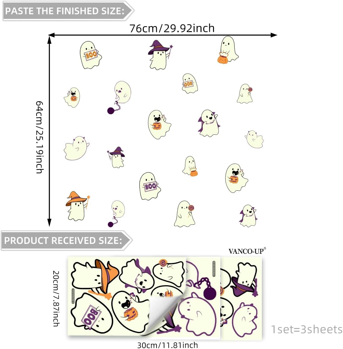 - Package Content: You will receive 1 set of Halloween glow-in-the-dark window clings, measuring 7.9x11.8 inches, with different sizes and shapes of ghosts, plenty of quantity, with a variety of lovely patterns to meet your Halloween decoration needs