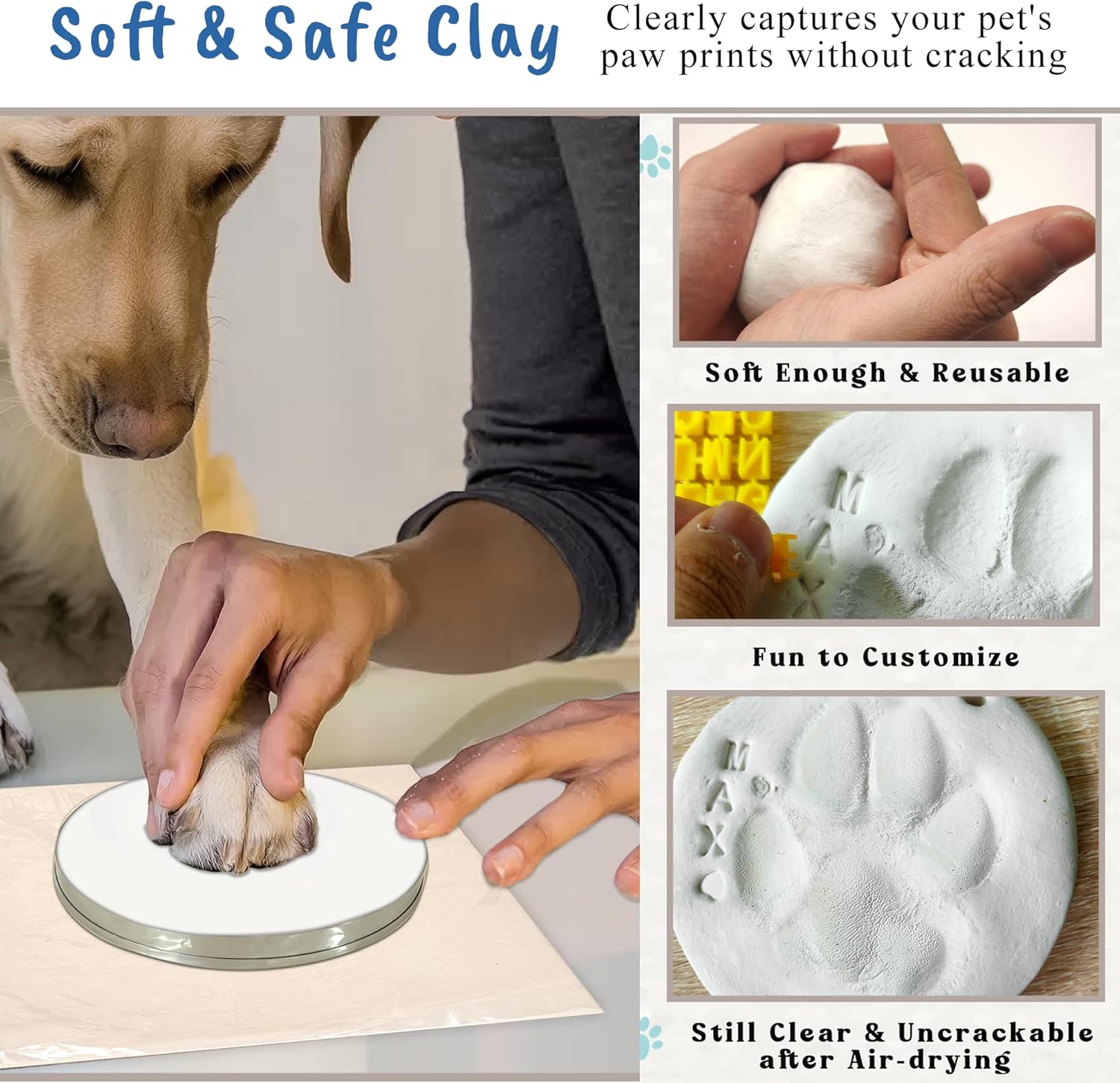 - { Safe, Soft & Mess-Free } Our pet-safe clay and ink pads are specially designed for pets,dogs and cats.Soft clay for clear imprints with just a little force pressâeven for older pets,kittens,and puppies. Ink pad is clean touch.Pets press the inkless side and their paw prints will instantly show up on papers or round pieces. No paw cleanup needed after use! ďźclay paw print kitďźink pad for dog paw printsďź