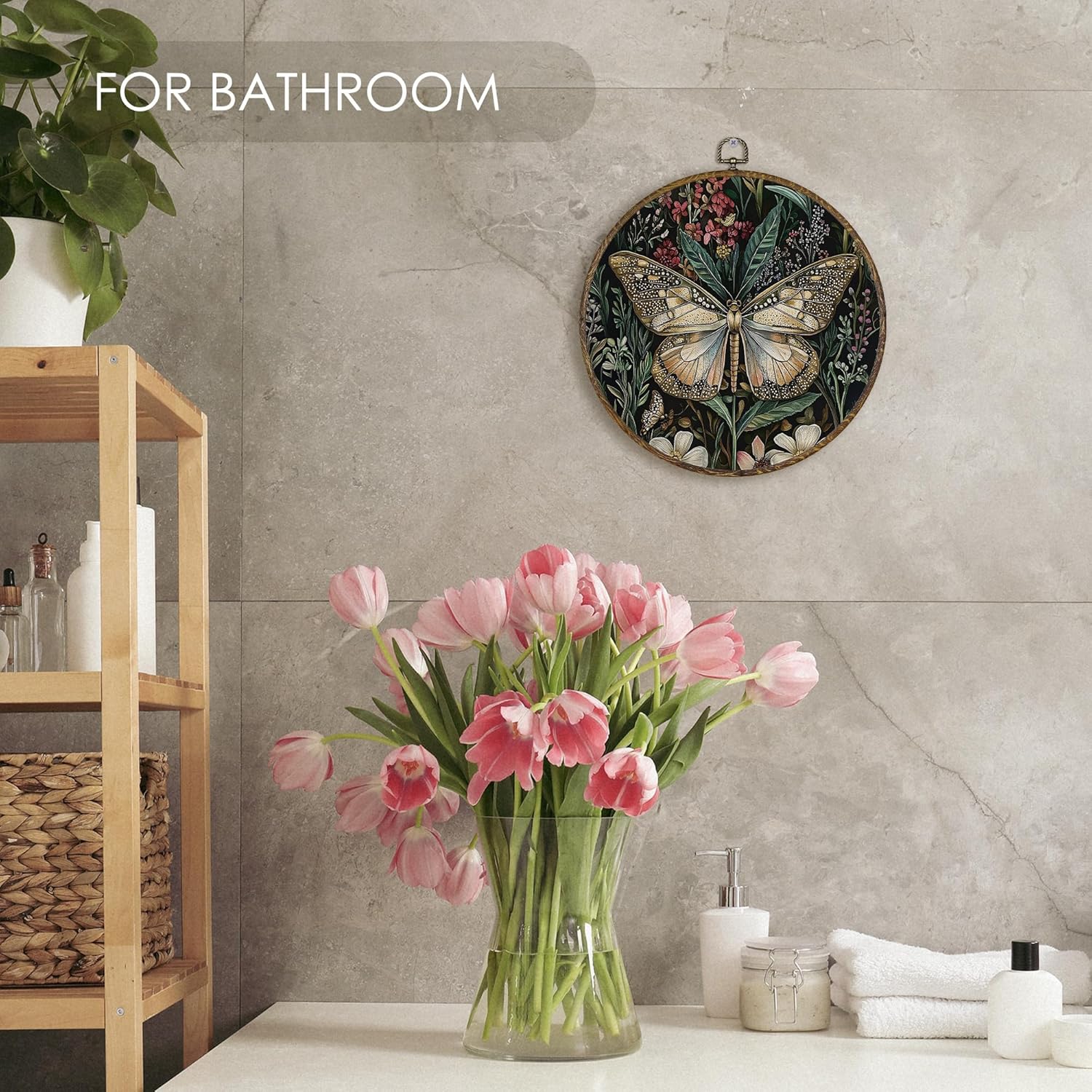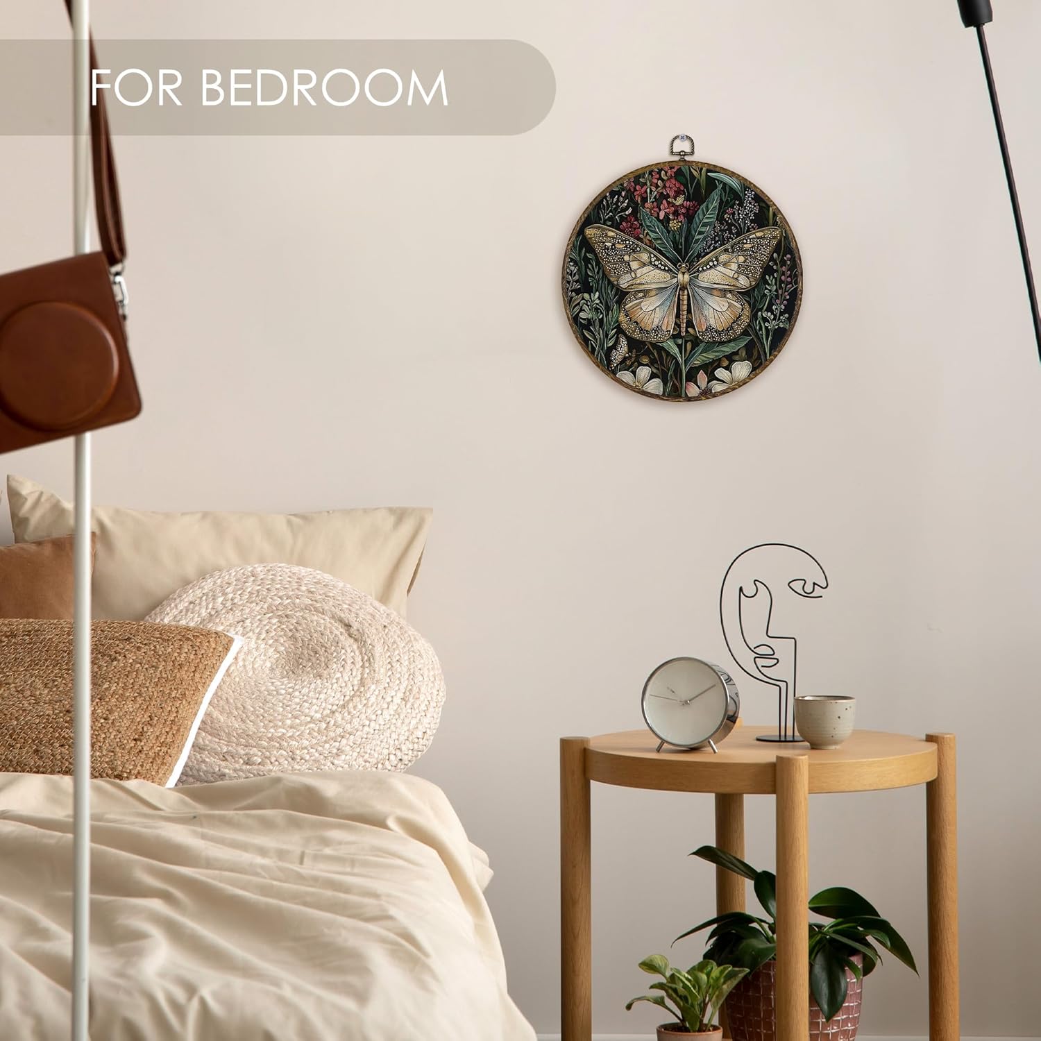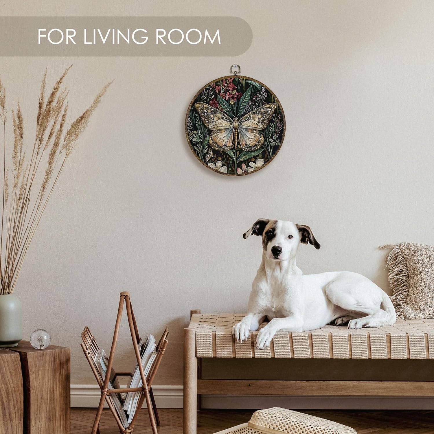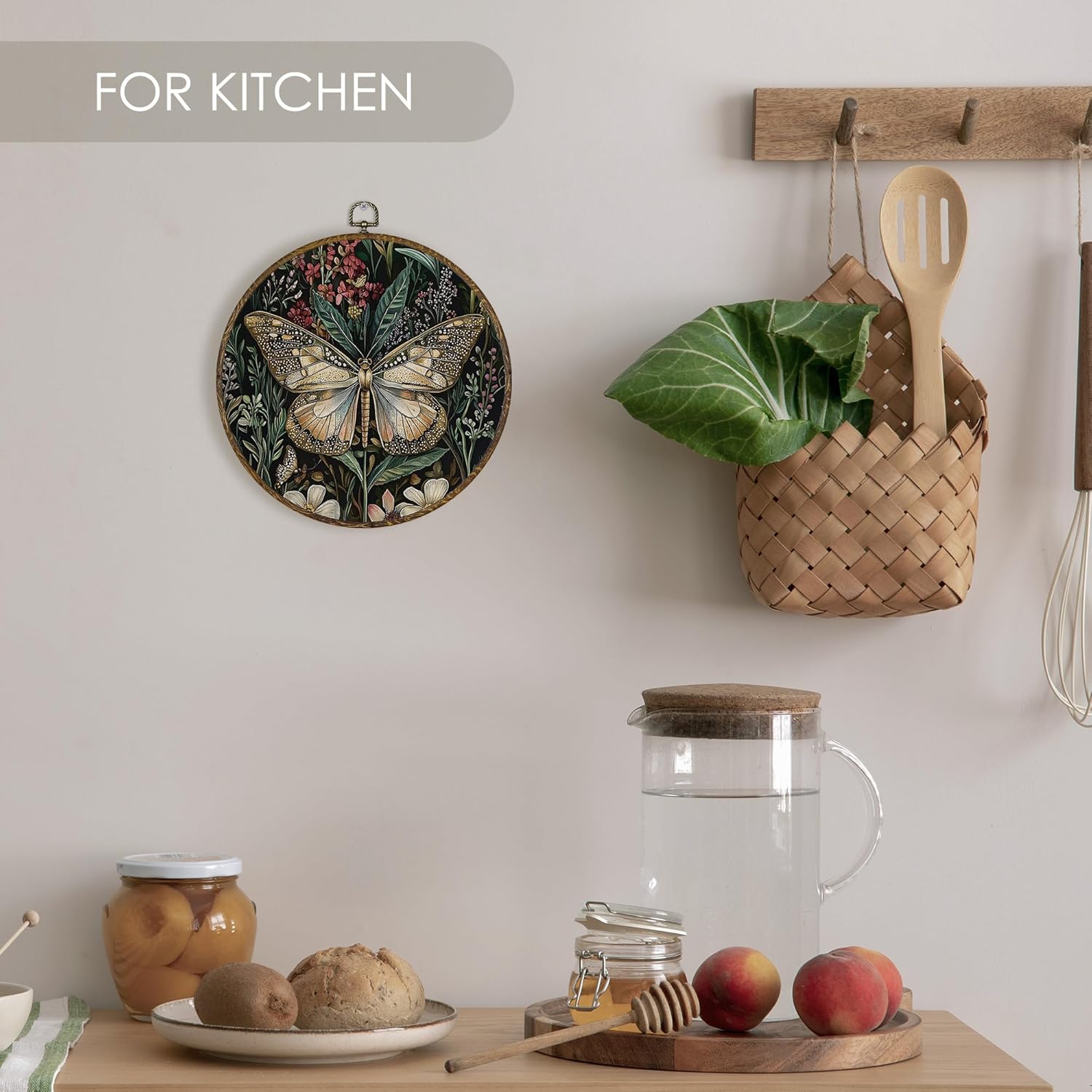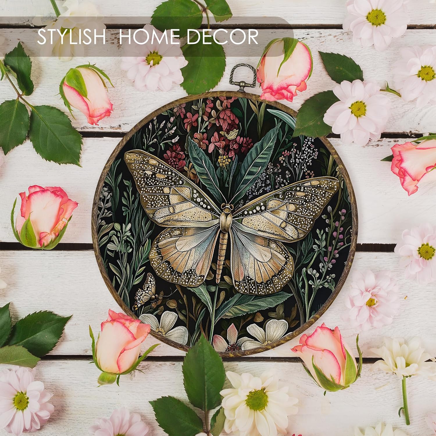 Fewgb Vintage Dark Moody Butterfly Round Wall Art Decor Framed for Bedroom Kitchen, Dark Cottagecore Academia Canvas Wall Art Prints Picture, Gothic Botanical Hanging Room Decor Artwork 10x10