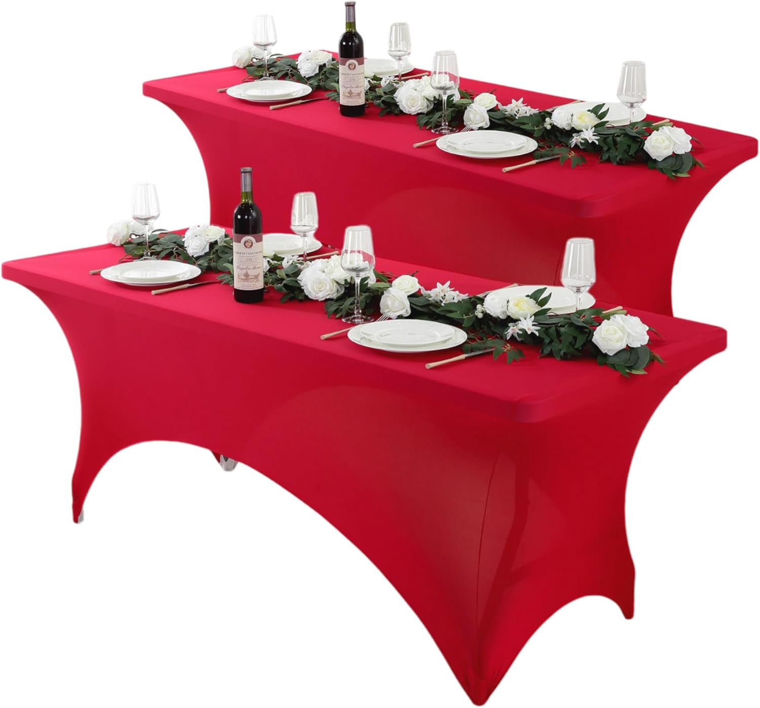 Craft And Party 2 Pack 6ft Red Spandex Tablecloth – Fitted Stretch Cover – Universal Fit for Folding Tables – Wrinkle-Free, Washable – Ideal for Parties, Weddings, Events